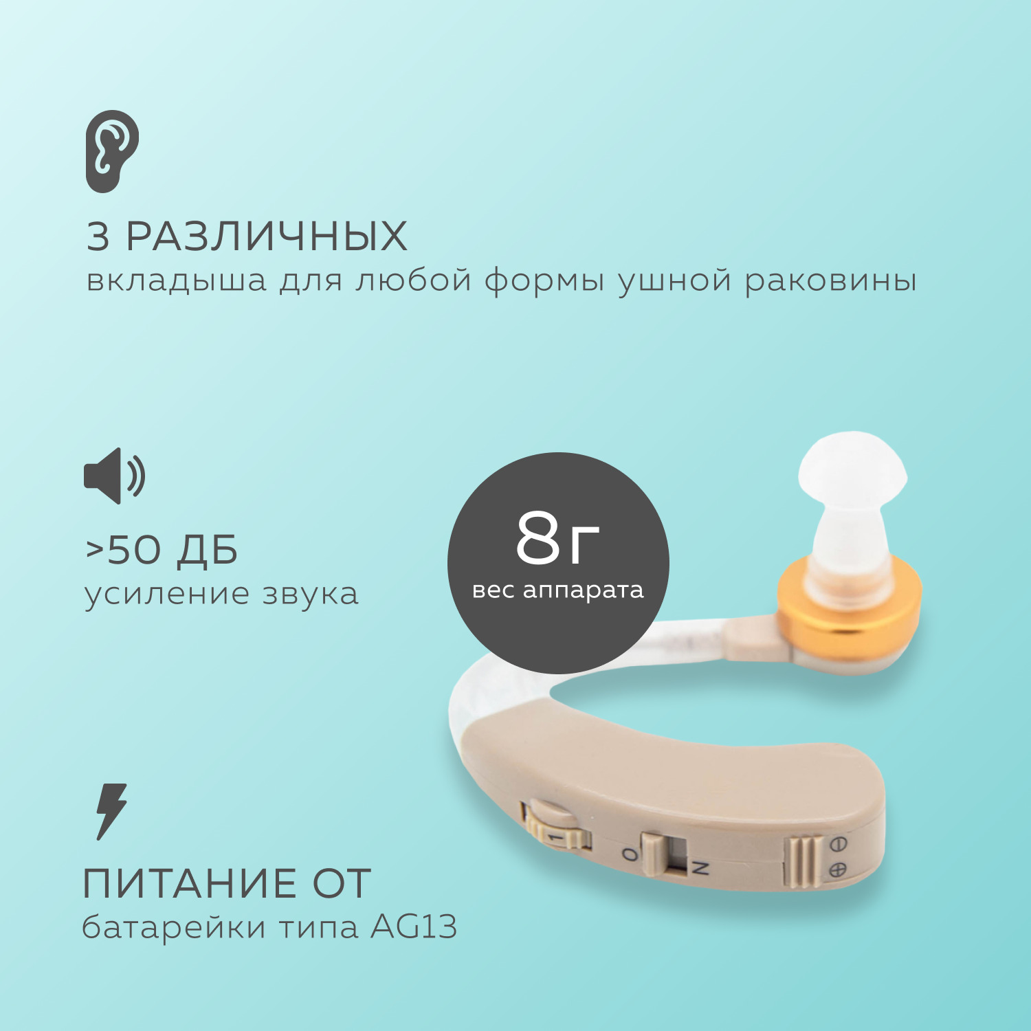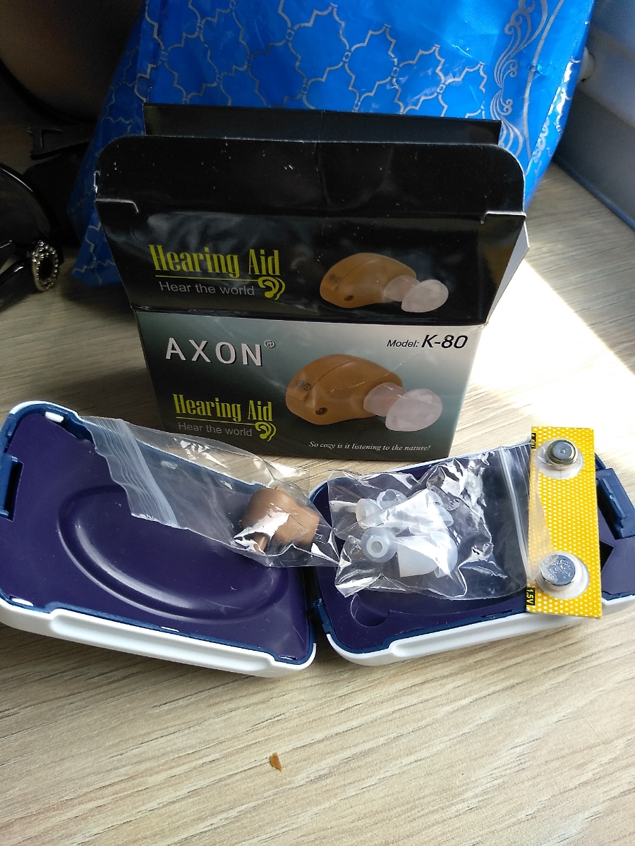 Заушный слуховой аппарат Axon F-139 практически не заметен для посторонних. Он отличается компактными размерами и маленьким весом. Работает на батарейке AG13. Устройство поставляется в комплекте с насадками разного размера. Это позволяет подобрать наиболе