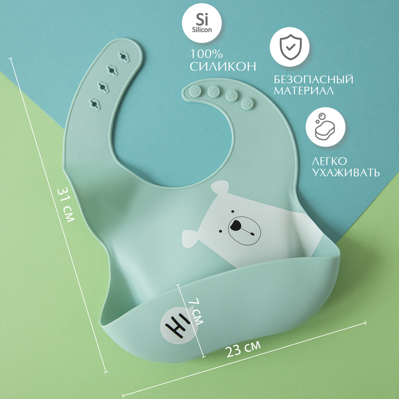Силиконовый нагрудник с большим карманом защитит одежду малыша от пролившейся пищи, сделает процесс кормления более комфортным. Выполнен из высококачественного пищевого силикона. Слюнявчик легко гнется, что позволяет его свернуть в трубочку и убрать в люб