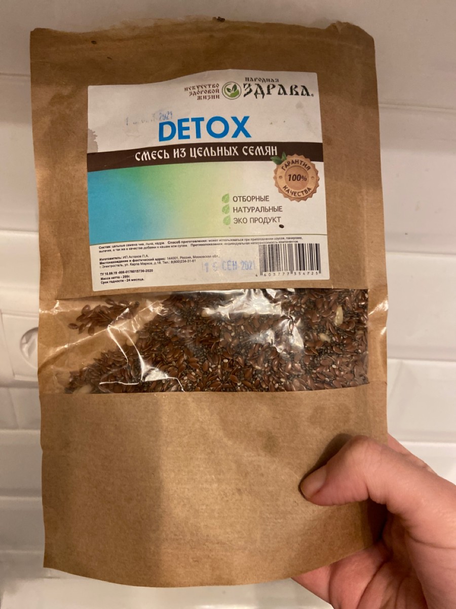 Условия хранения:Хранить при температуре +5C до +18C и влажности не более 70%. При отсутствии прямых солнечных лучей.Состав:Цельные семена Чиа, Льна, КедраОписание:Смесь из цельных семян (DETOX / MAX) используется как вкусное и питательное дополнение при