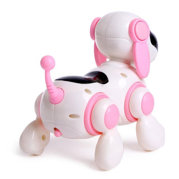 Милый робот-собака точно обрадует своего маленького хозяина. Звуковые и световые эффекты. Воспроизводит весёлую песенку про щенка. Издаёт звук лая. Умет самостоятельно ходить. Глазки светятся. Робот работает 2 батареек типа AA (не входят в комплект).