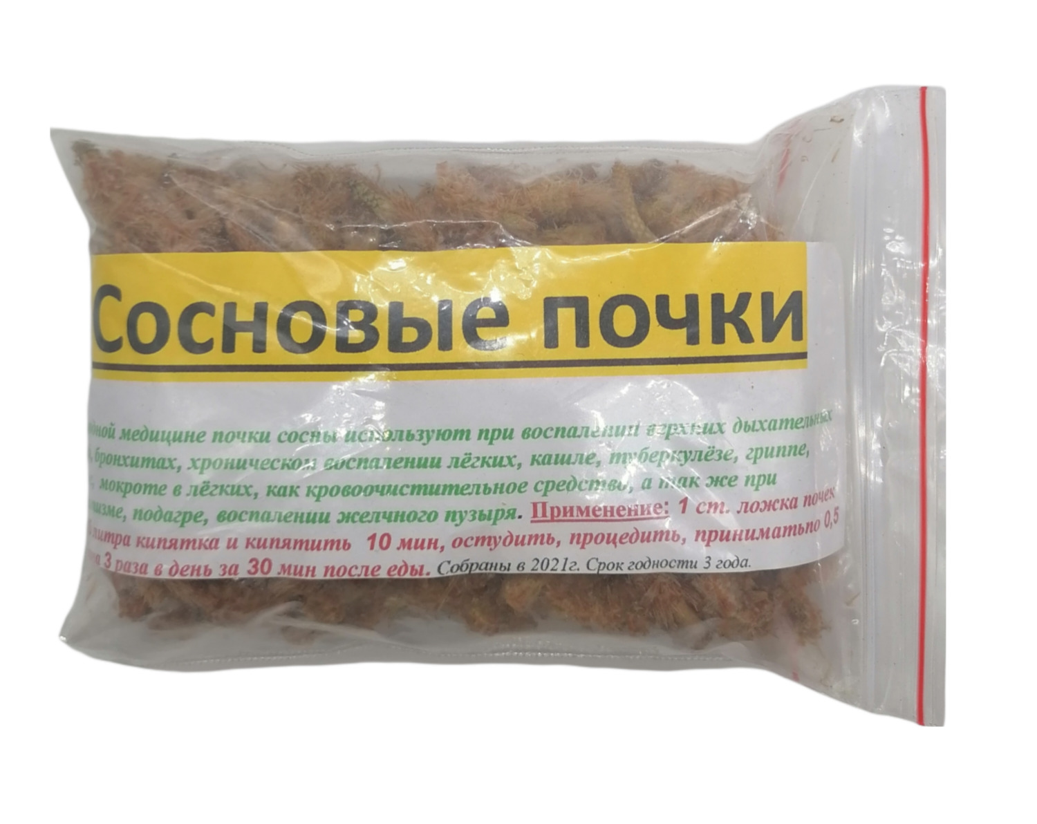 Почки сосны используют при воспалении верхних дыхательных путей, бронхитах, хроническом воспалении лёгких, кашле, туберкулёзе, гриппе, ангине, мокроте в лёгких, как кровоочистительное средство, а также при ревматизме, подагре, воспалении желчного пузыря.У