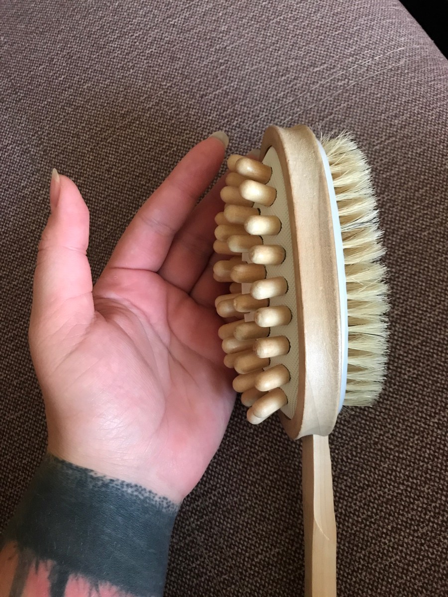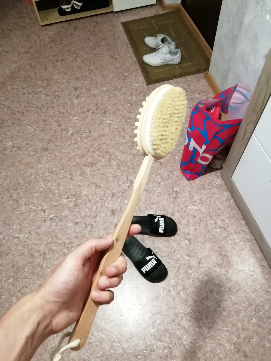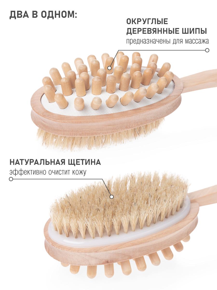 Массажная двусторонняя щетка – прекрасное средство для сухого скраббинга, массажа, она улучшает кровоснабжение и прекрасно очищает кожу.Массаж сухой щеткой улучшает микроциркуляцию, улучшает снабжение тканей кислородом, мягко отшелушивает ороговевшие клет