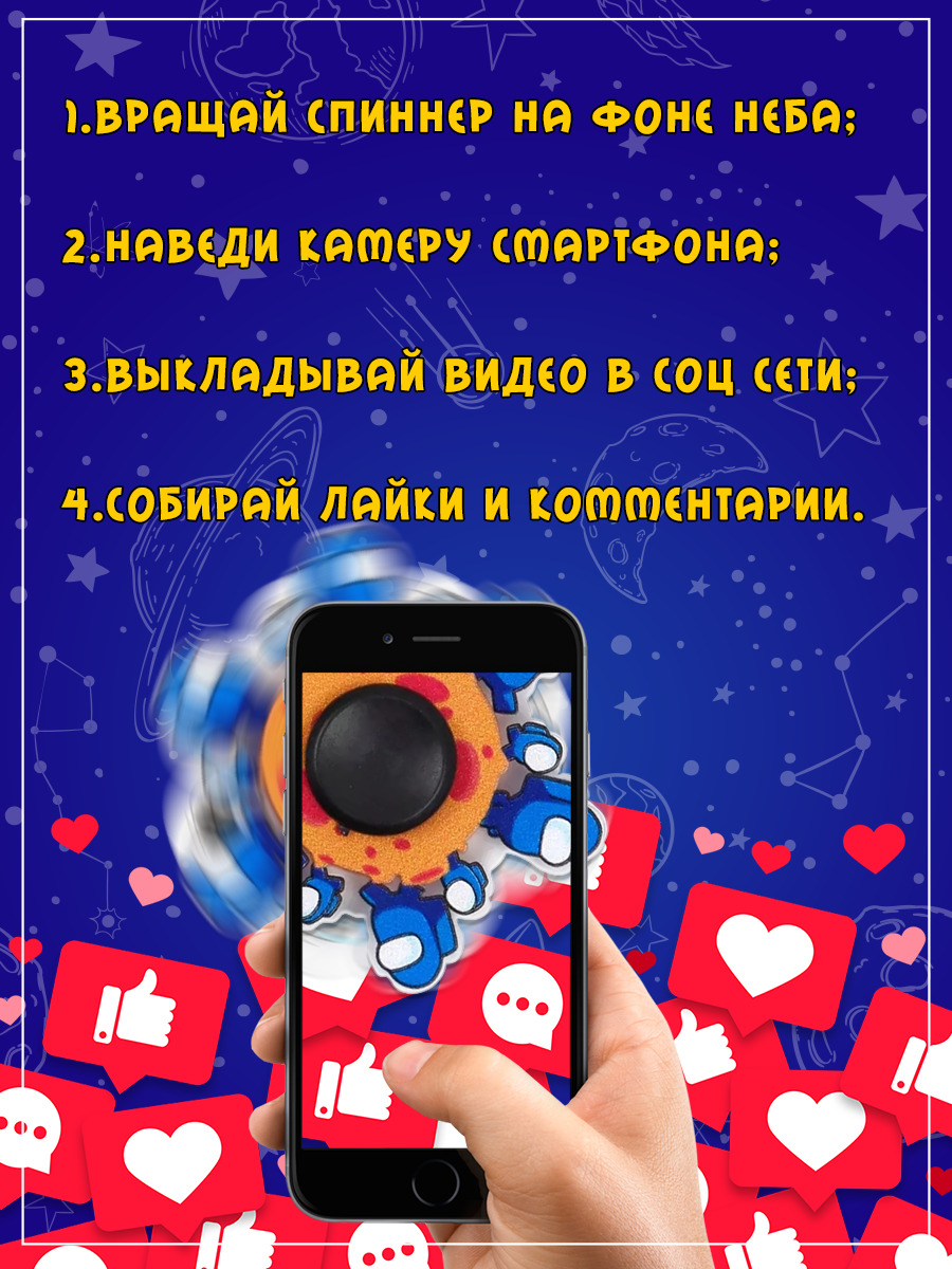 Анимированный спиннер. Новинка, тренд Tik-Tok 2021! При вращении 3D-спиннер показывает Вам движущихся персонажей. Для просмотра Вам нужно всего лишь включить камеру Вашего смарфона.Вращайте спиннер на фоне солнца или освещенного им небосвода, направьте на
