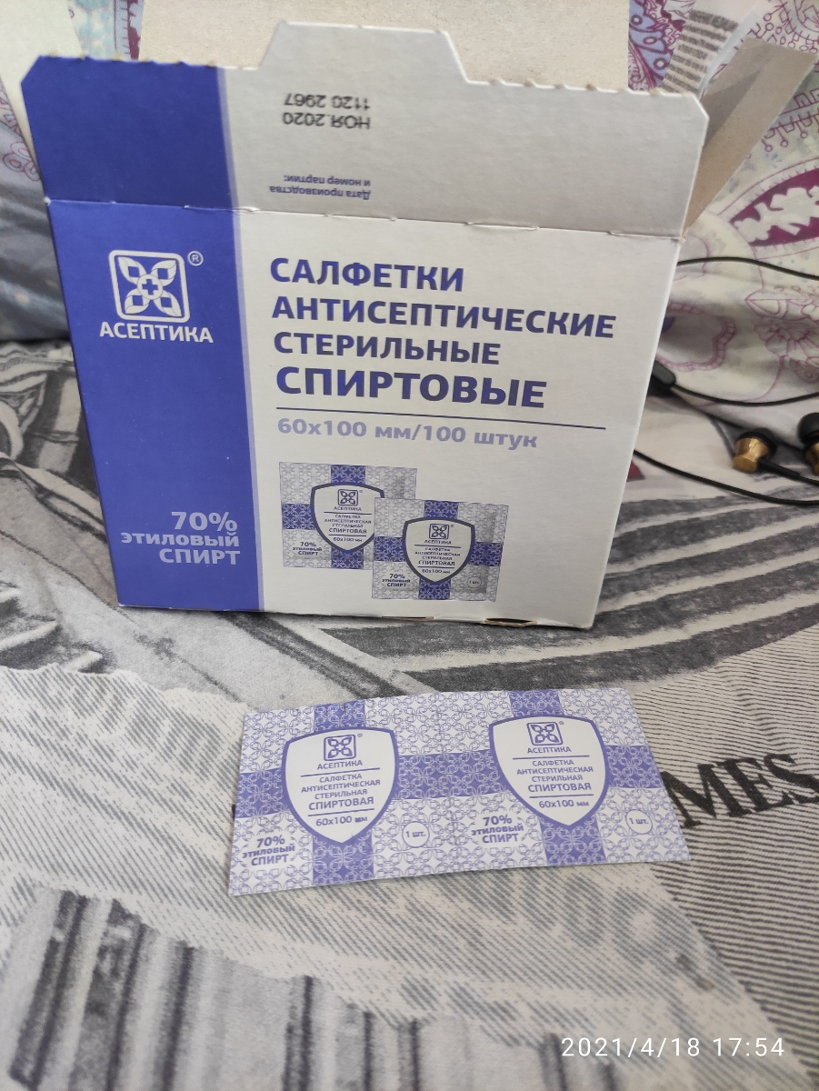 Состав:Нетканый текстилеподобный материал, 70% этиловый спиртКомплектация:Салфетки спиртовые 60х100 мм - 100 шт в коробкеОписание:Салфетка спиртовая антисептическая стерильная из нетканого материала обеспечивает надежную обработку кожи и поверхностей.Прим
