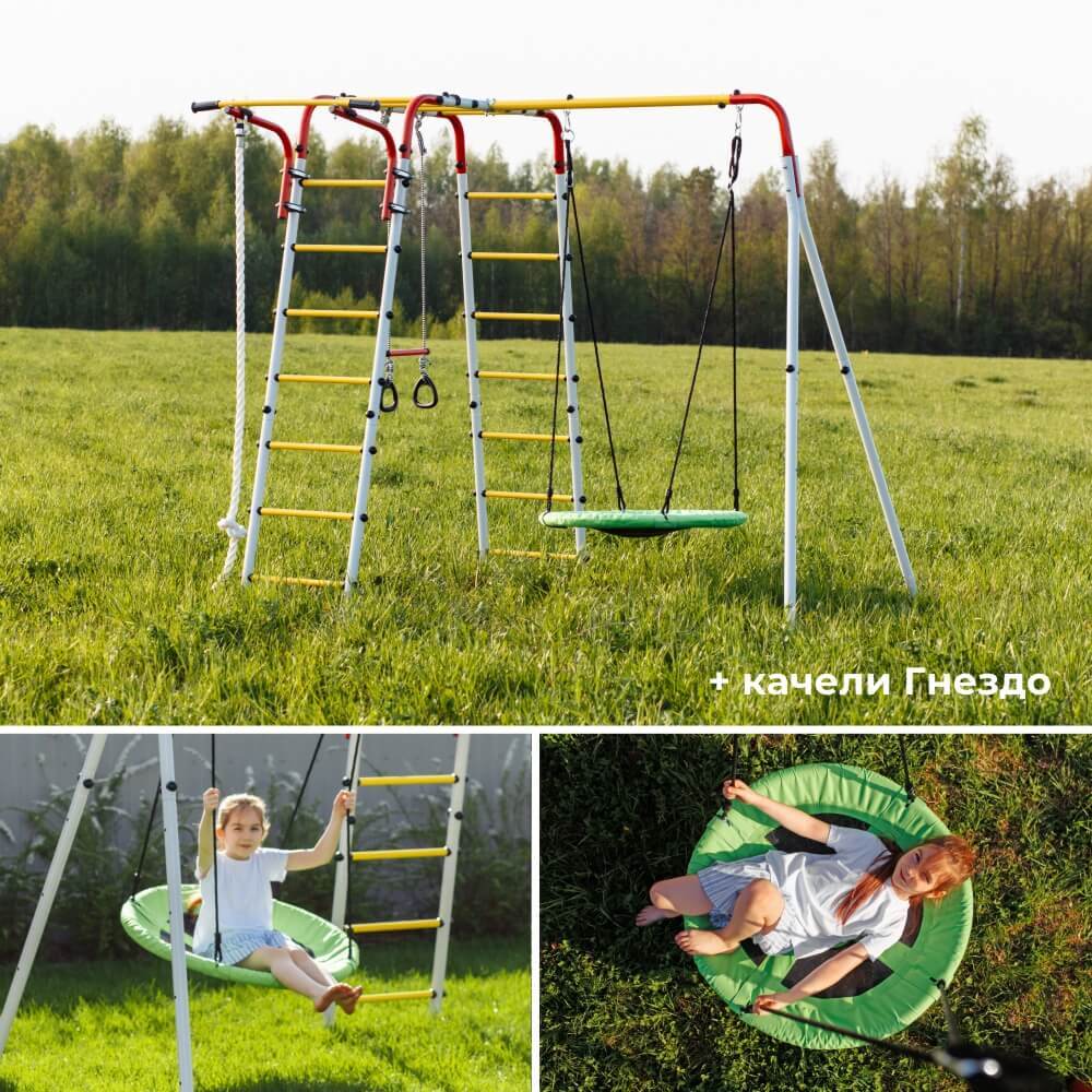 КомплектацияГимнастические кольца, Канат, Турник, Лестница, Качели, Рукоход