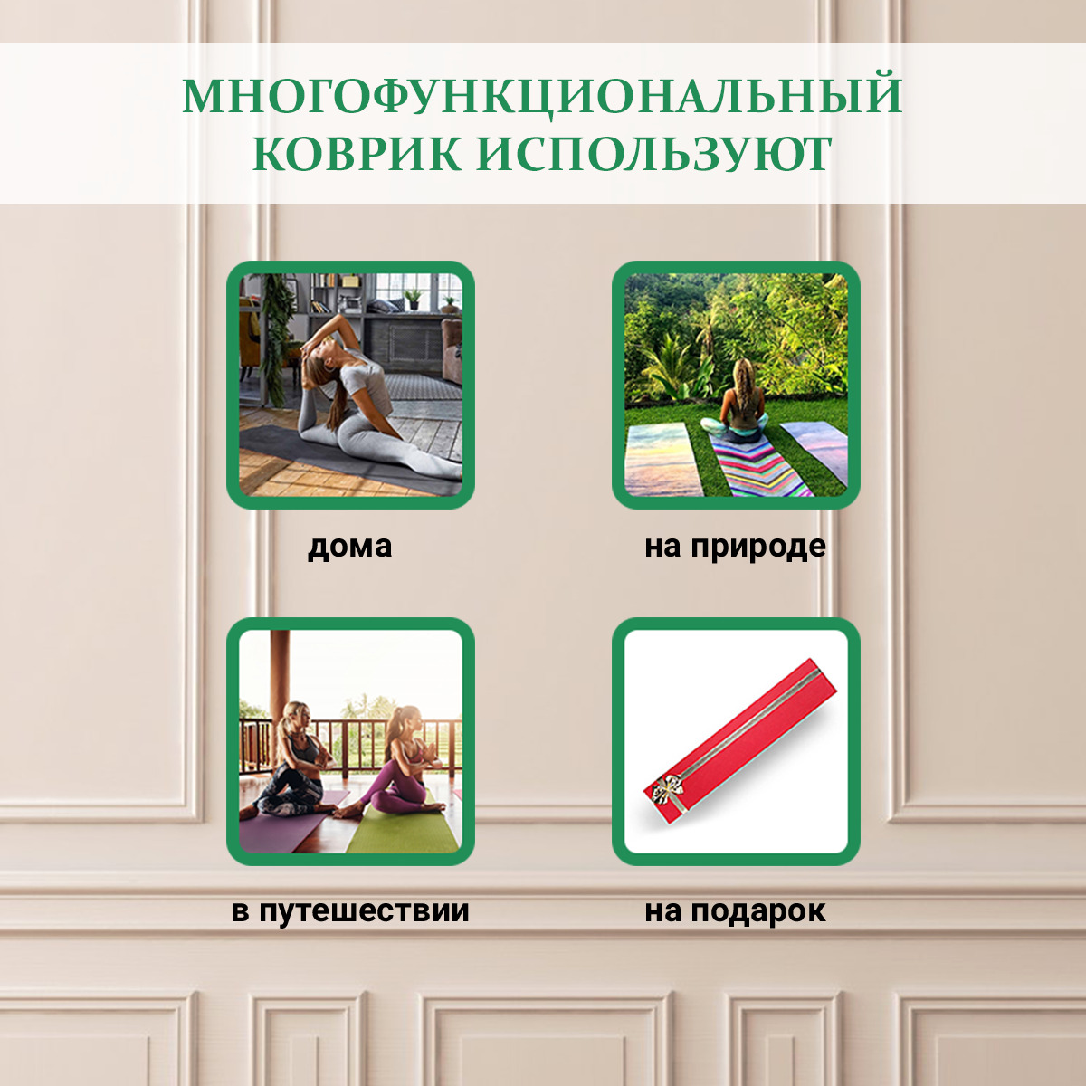 Коврик для йоги и фитнеса имеет оптимальный размер 180 на 60 см. Два плотных слоя коврика для занятий спортом смягчают нагрузку. Перед отправкой каждый спортивный коврик проверяет служба качества. Коврик для спорта с текстурой на поверхности хорошо фиксир