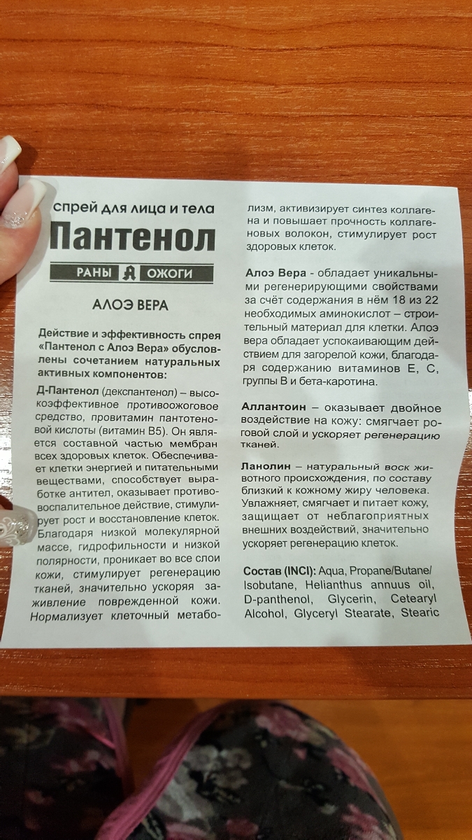 Состав (INCI): Aqua, Propane/Butane/ Isobutane, Helianthus annuus oil, D-panthenol, Glycerin, Cetearyl Alcohol, Glyceryl Stearate, Stearic acid, Triethanolamine, Allantoin, Lanoline, Aloe barbadensis Extract, Methylparaben, Propylparaben.Действие: Оказыва