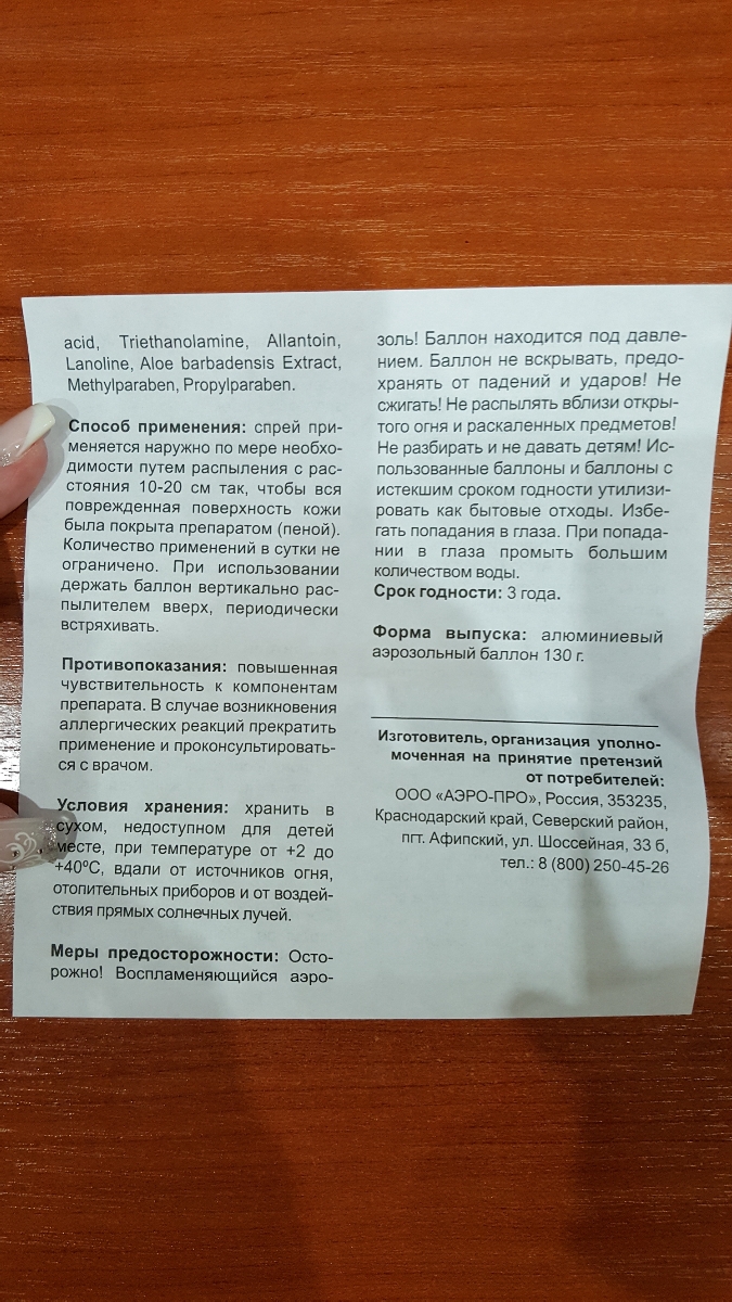 Форма выпуска продуктаАэрозоль