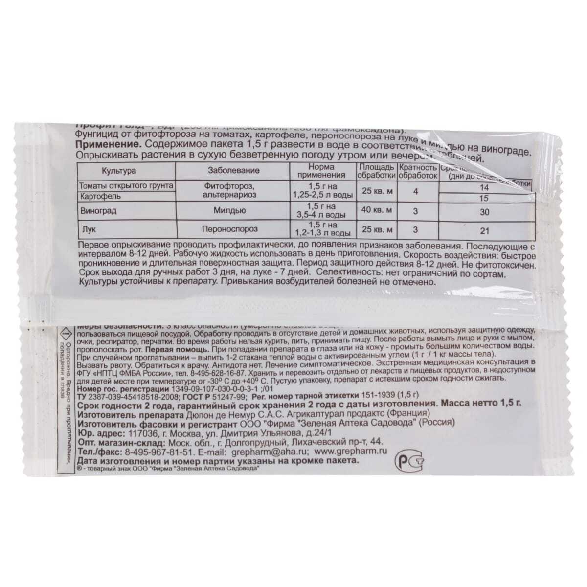 Комплектация:Средство для защиты томатов, картофеля, лука и др. от болезней Профит Голд (комплект 2 шт. по 3 гр.)Описание:ПРОФИТ ГОЛД является фунгицидом, в состав которого входит медь. Он оказывает лечащее и защитное действие при борьбе с милдью, альтерн