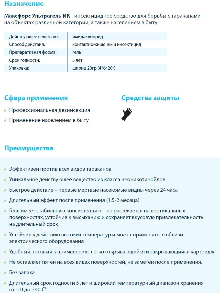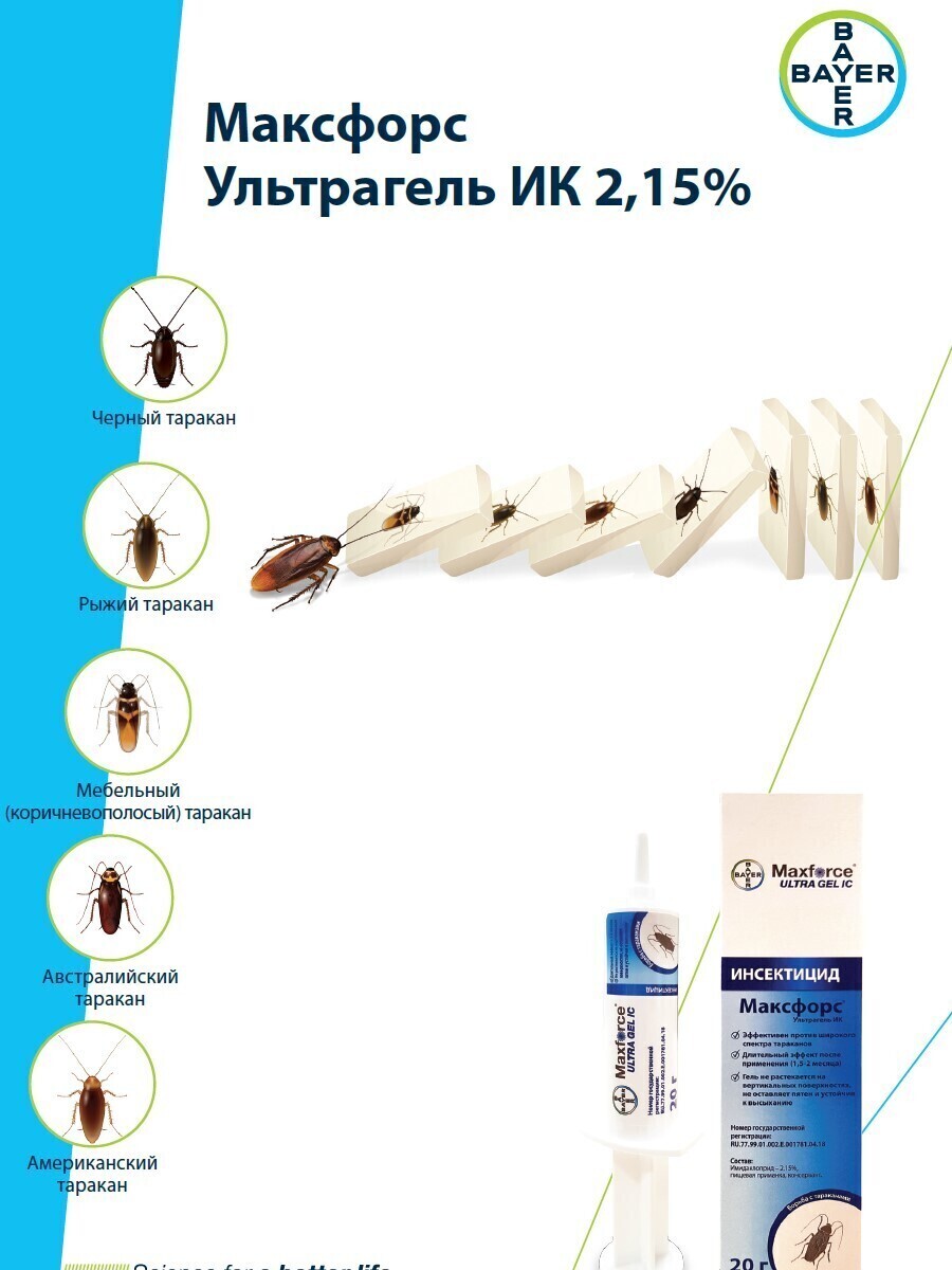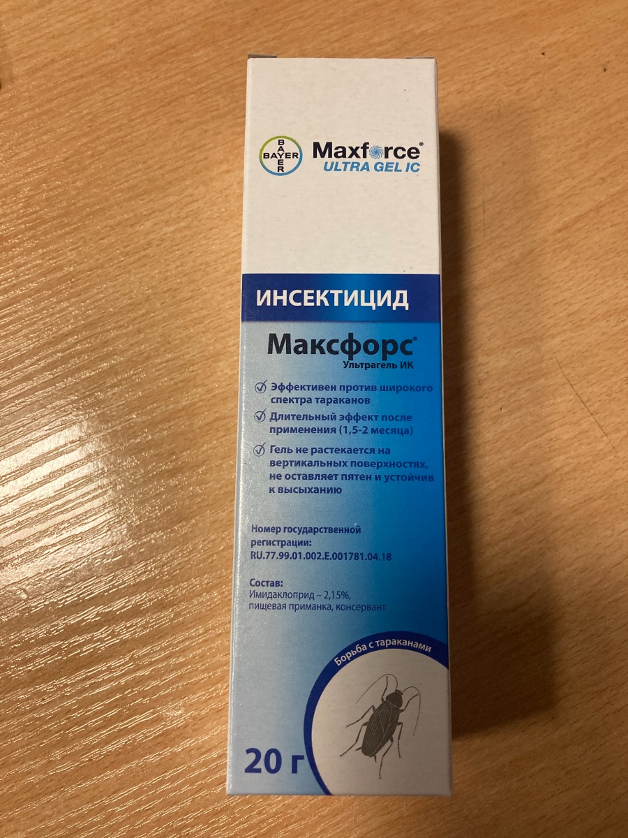 Состав:Имидаклоприд , Консервант, Пищевые привлекателиОписание:Максфорс - супер эффективный гель от тараканов. Оригинальный гель Максфорс производится в Германии Bayer. Обладает сильным привлекательным действием для тараканов. Способ применения очень прос