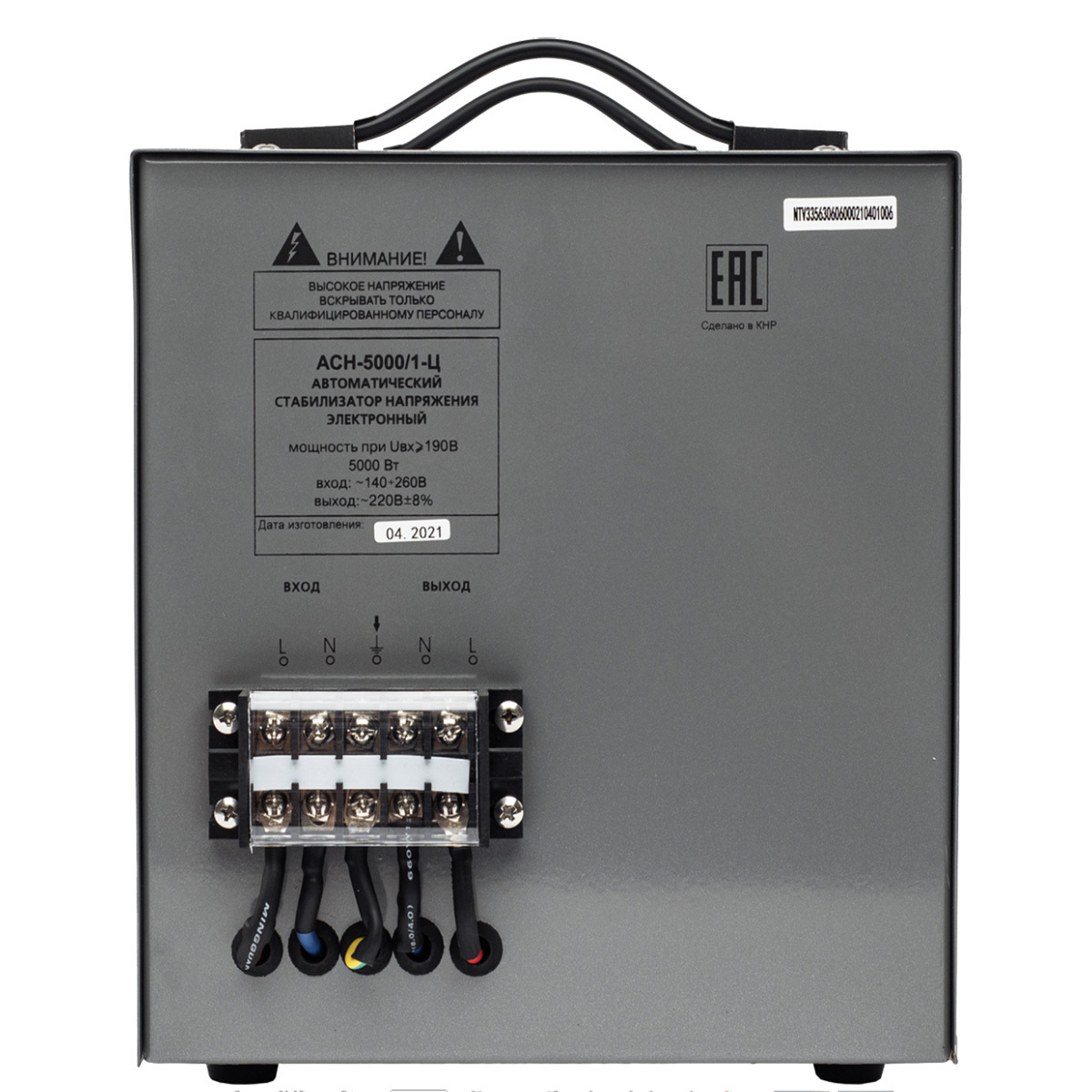 Комплектация:Однофазный стабилизатор напряжения электронного типа АСН-5000/1-Ц - 1 шт.