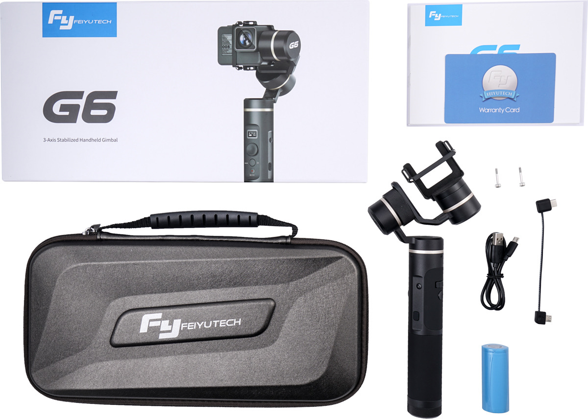 3х осевой стабилизатор Feiyu G6 получил от разработчиков не только обновленное программное и аппаратное обеспечение, но и брызгозащищенный корпус. Также, новинка оснащена технологией WiFi+ Bluetooth, которая при подключении к экшн-камерам GoPro позволяет