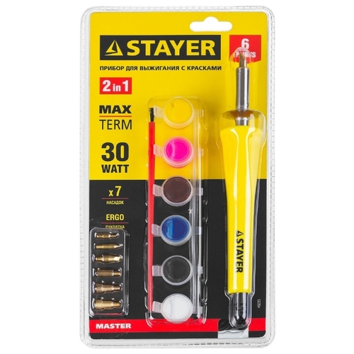 В комплектеподставка, выжигательный аппарат, сменные насадки