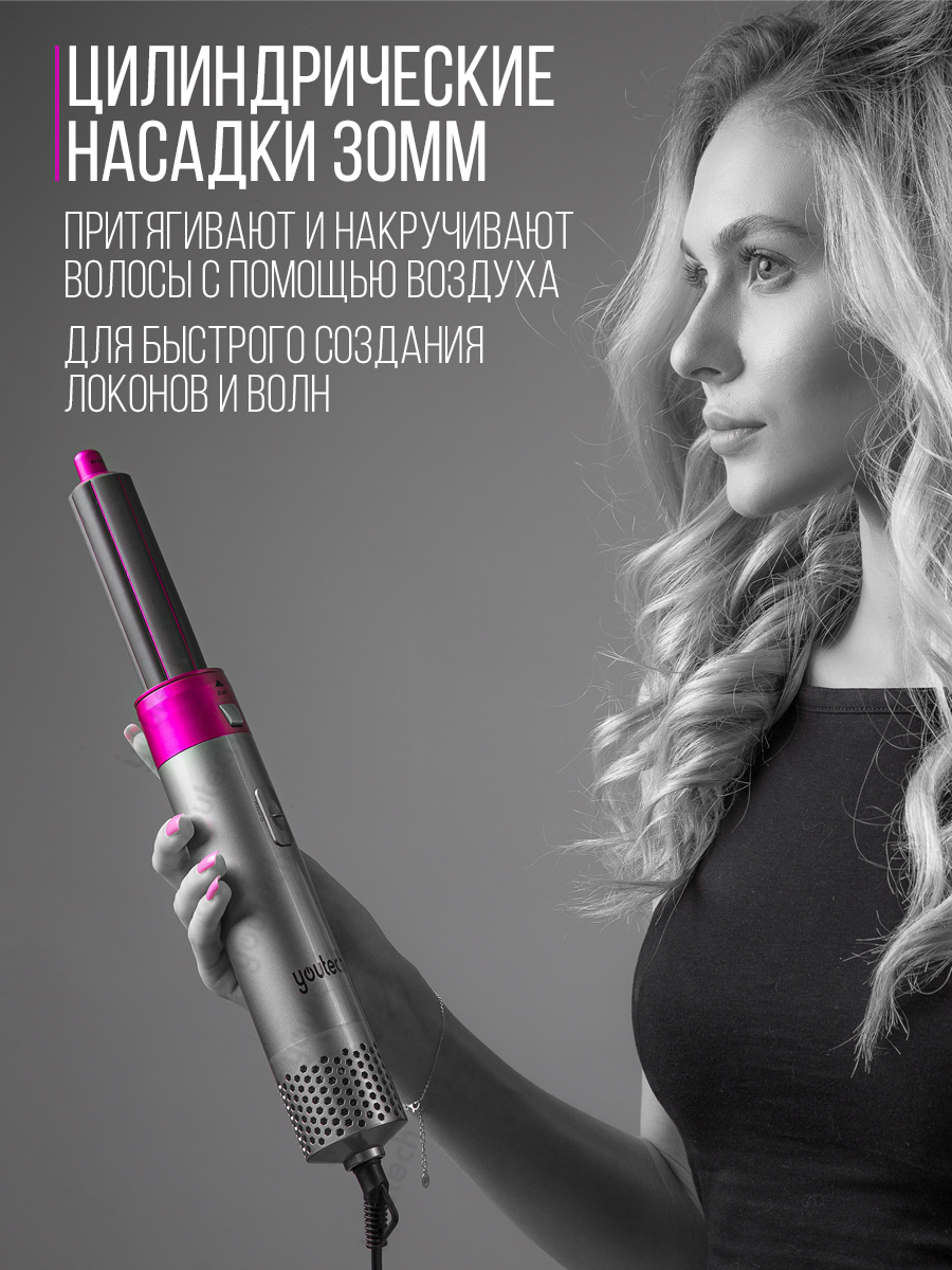 Насадки для приборов по уходу за волосамиДля придания объема, Для локонов, Для выпрямления волос, Для гофре, Насадка-бигуди, Насадка-расческа, Круглая щетка