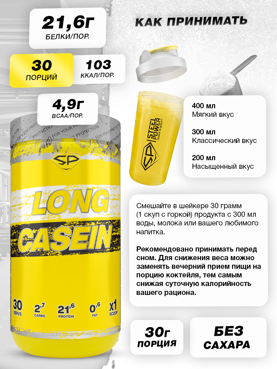 LONG CASEIN – высококачественный мицеллярный казеиновый протеин, дающий максимум эффекта!Вы стремитесь похудеть и привести фигуру в подтянутую форму? Хотите привести мышцы в тонус или помочь им быстрее восстанавливаться после тренировок? А может быть Вы б