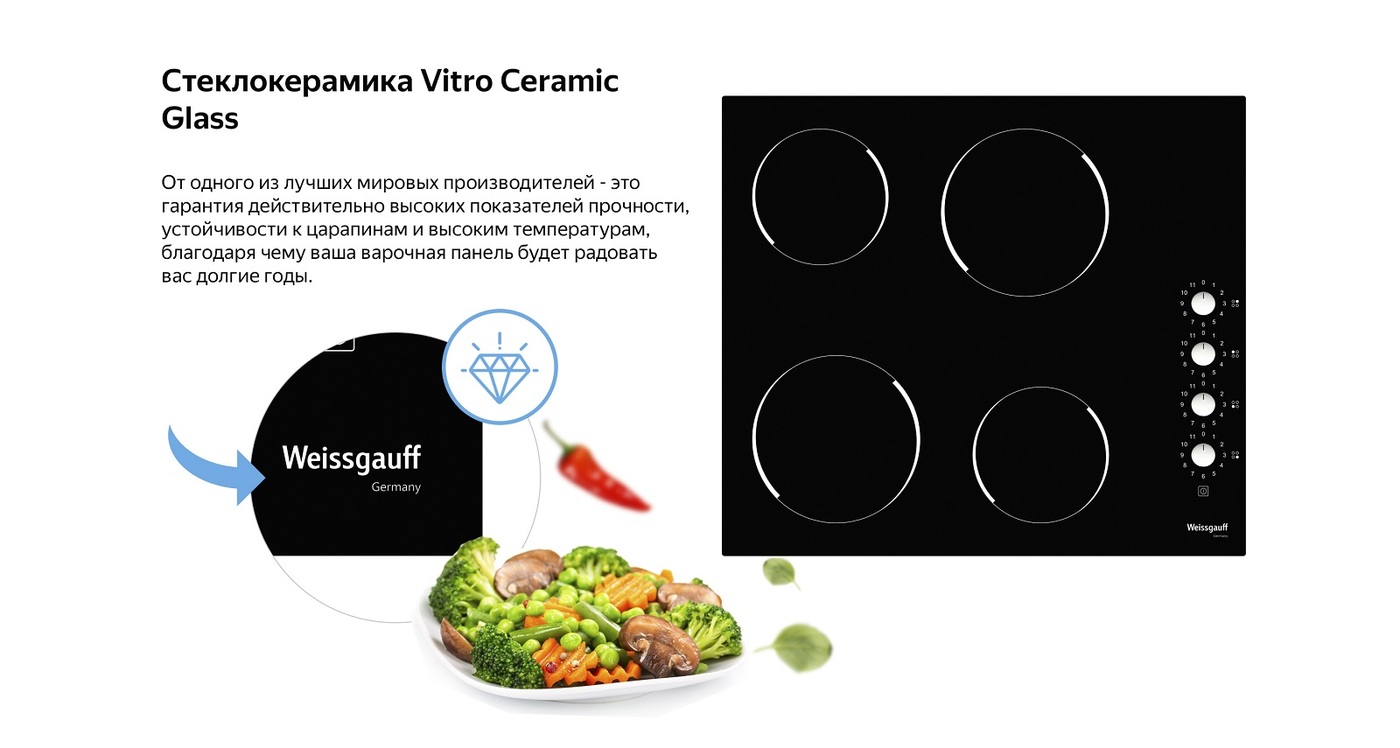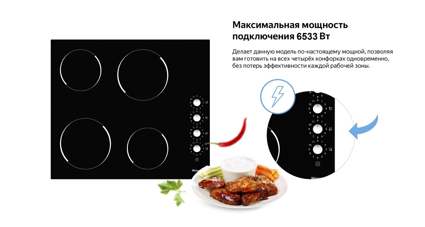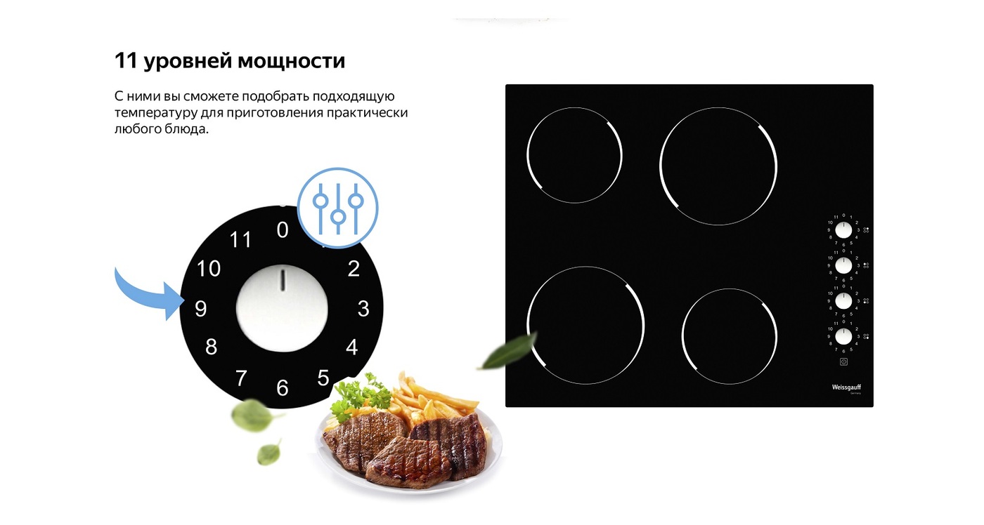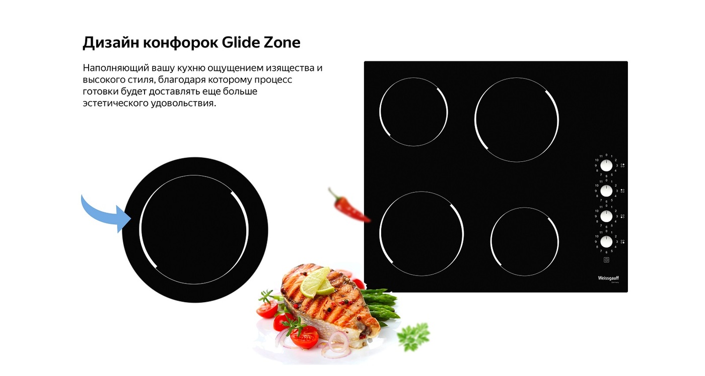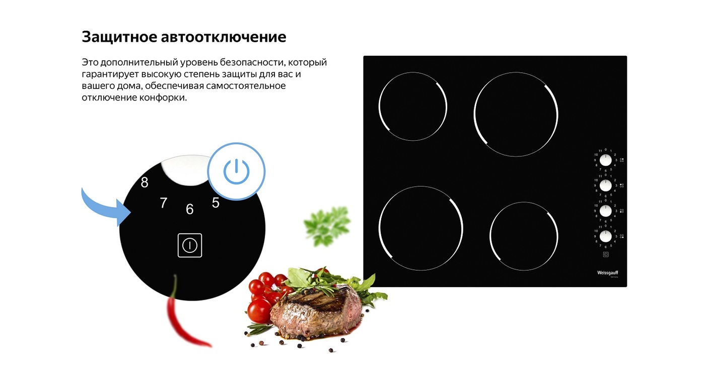 Стеклокерамическая варочная панель Weissgauff с надёжным механическим управлением Soft Switch - это безотказность, долговечность и ощущение истинного качества в каждом повороте рукоятки. Фундаментальный немецкий подход к исполнению всех элементов даёт вам