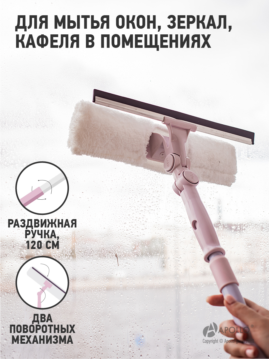 Изделие предназначено для мытья окон, стекол, зеркал и кафеля в помещениях. Стекломой прекрасно подойдет для мытья автомобильных стекол и зеркал.Телескопическая ручка имеет два поворотных механизма, что позволяет точно регулировать наклон изделия в двух п