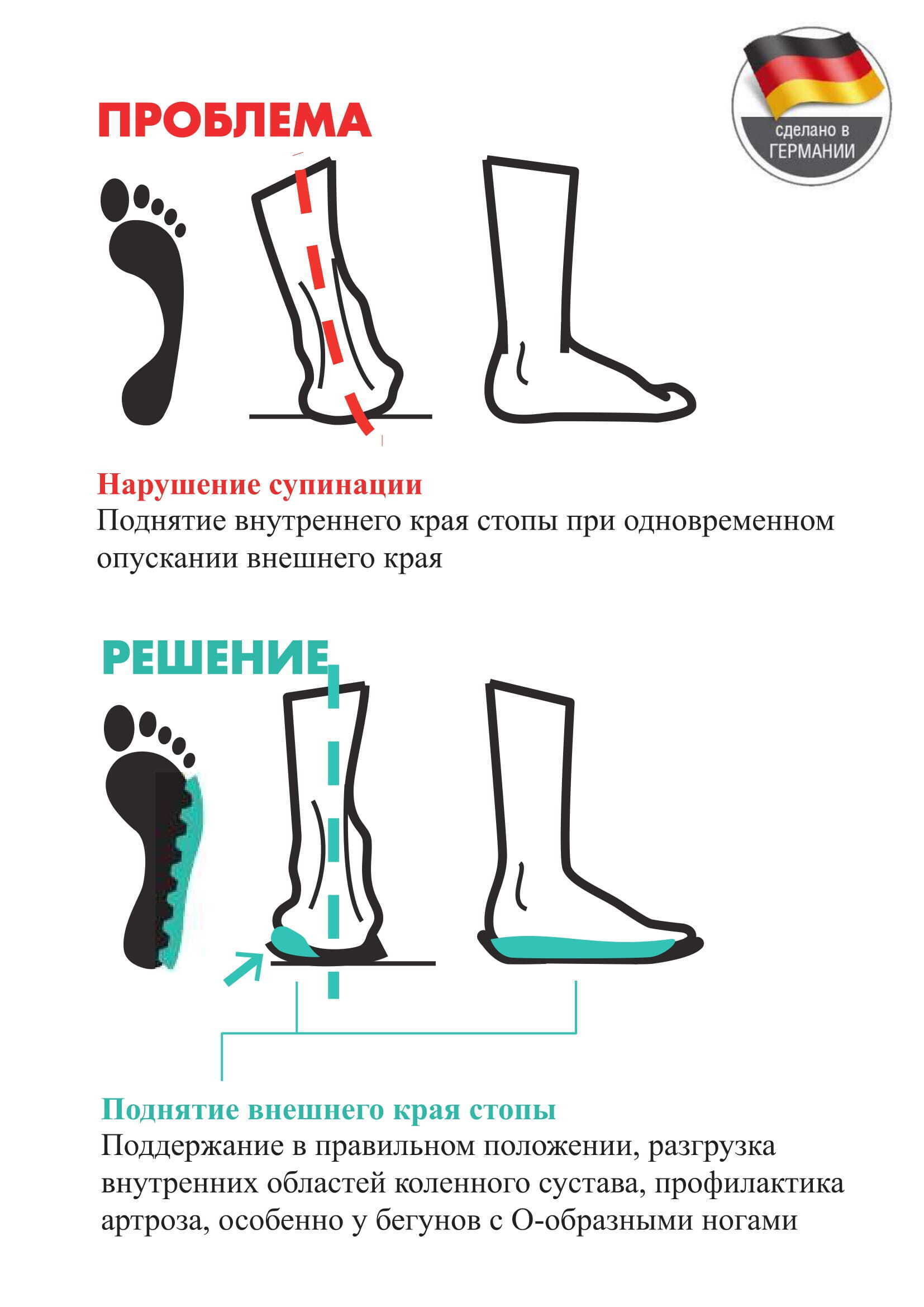 OPTIZONE TWO Стельки для коррекции постановки стопы - при нарушении супинации (при заваливании стопы на внешний край). Для женщин и мужчин. Зона бирюзового цвета выполнена из специального материала, поддерживающего проблемный отдел стопы. Таким образом пр