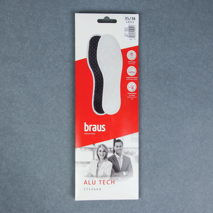 Теплые зимние стельки рассчитаны на температуру до ‒47 ˚С. Фольга сохраняет тепло и поддерживает оптимальную температуру ног. Волокно из овечьей шерсти поглощает влагу и предотвращает охлаждение. Компания ООО «Браус» специализируется на производстве качес
