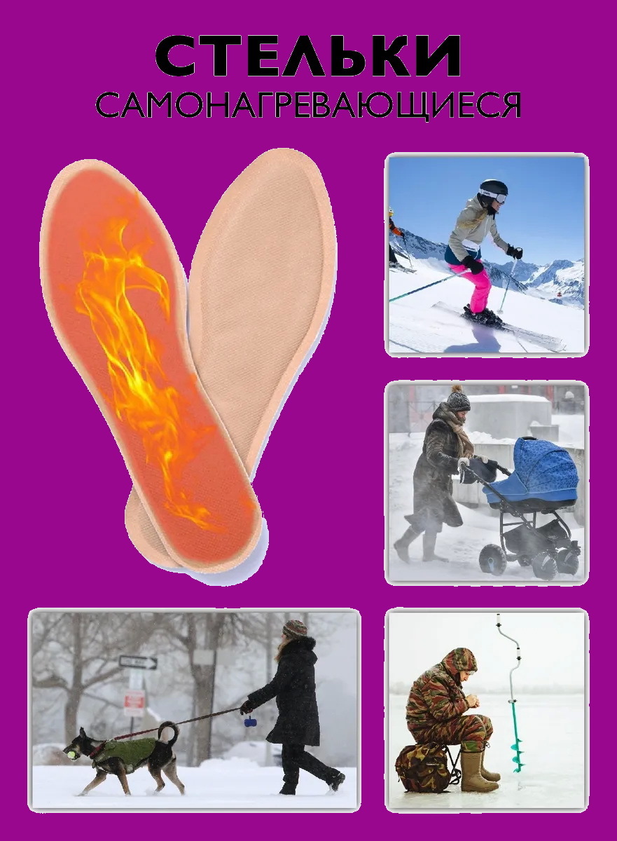 Стельки самонагревающиеся одноразовые. Начинают работать при открытии и взаимодействии с воздухом (кислородом). При замерзании ступней ног стельки будут согревать ваши ноги в течении долгого времени. Данные стельки пользуются большим спросом у охотников,