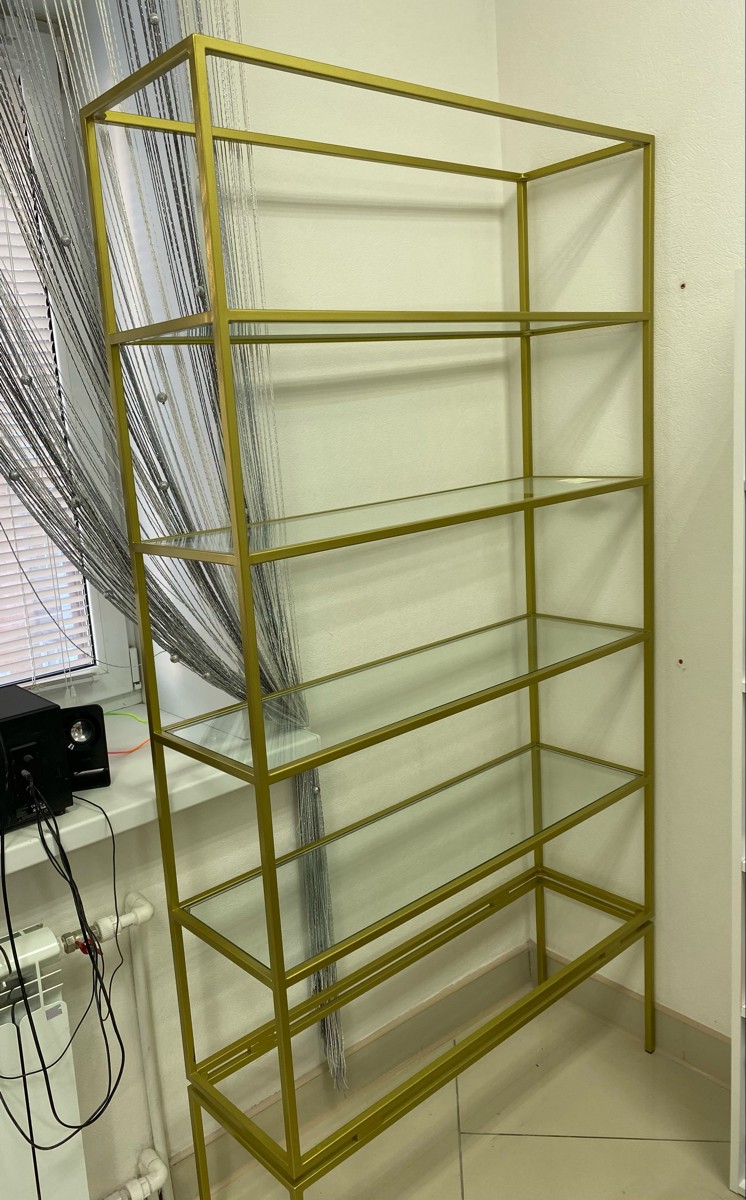 Дополнительно:Стеллаж отлично смотрится как в жилых комнатах, так и в ванной или кладовой.Особенности:- толщина полок 8 мм- каркас изготовлен из стали, окрашенной порошковой краской в золотой цвет- 6 стекол, 8 мм калёное стекло