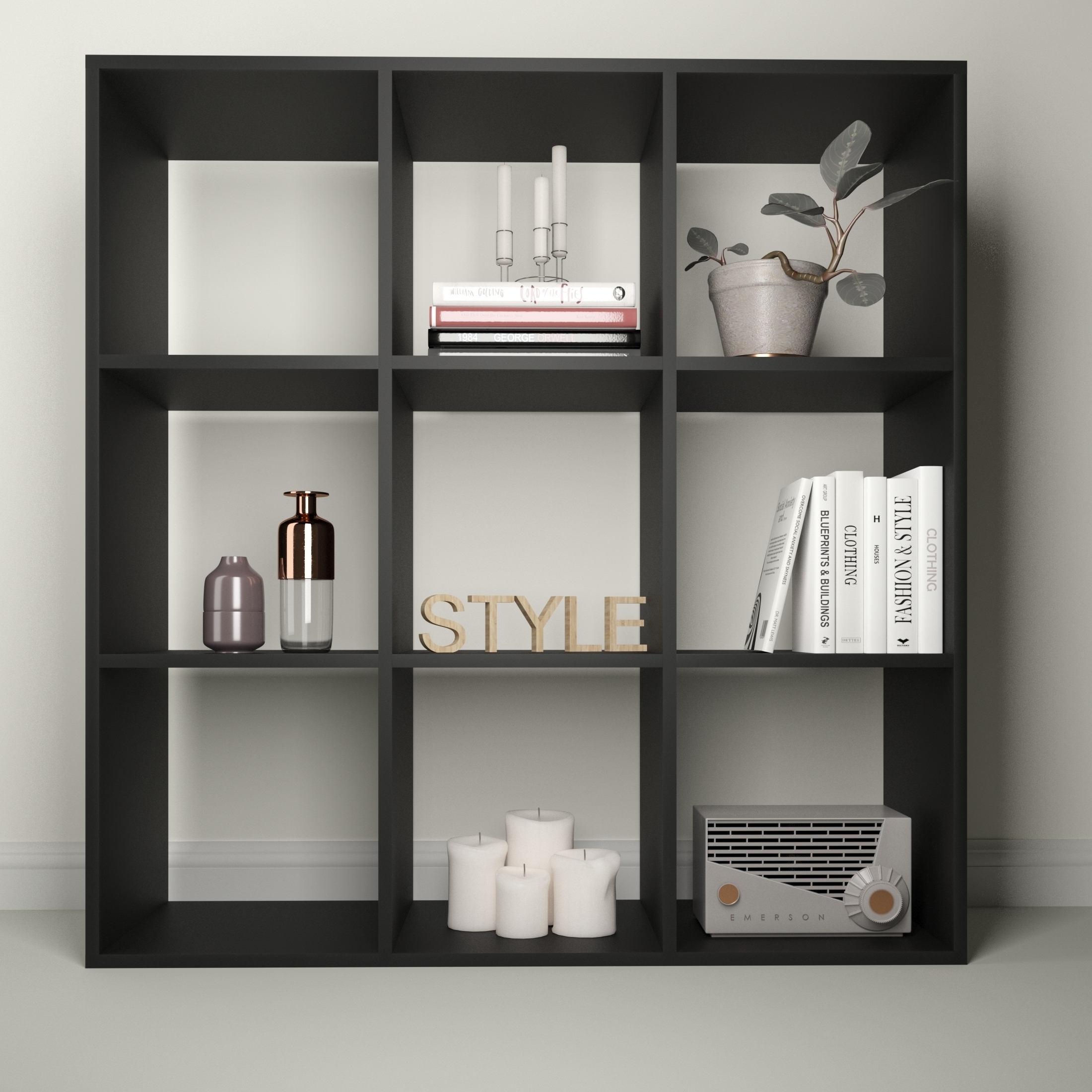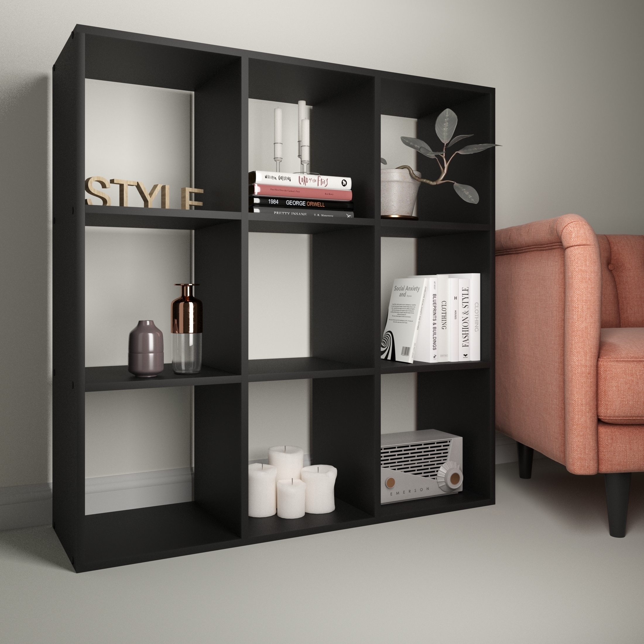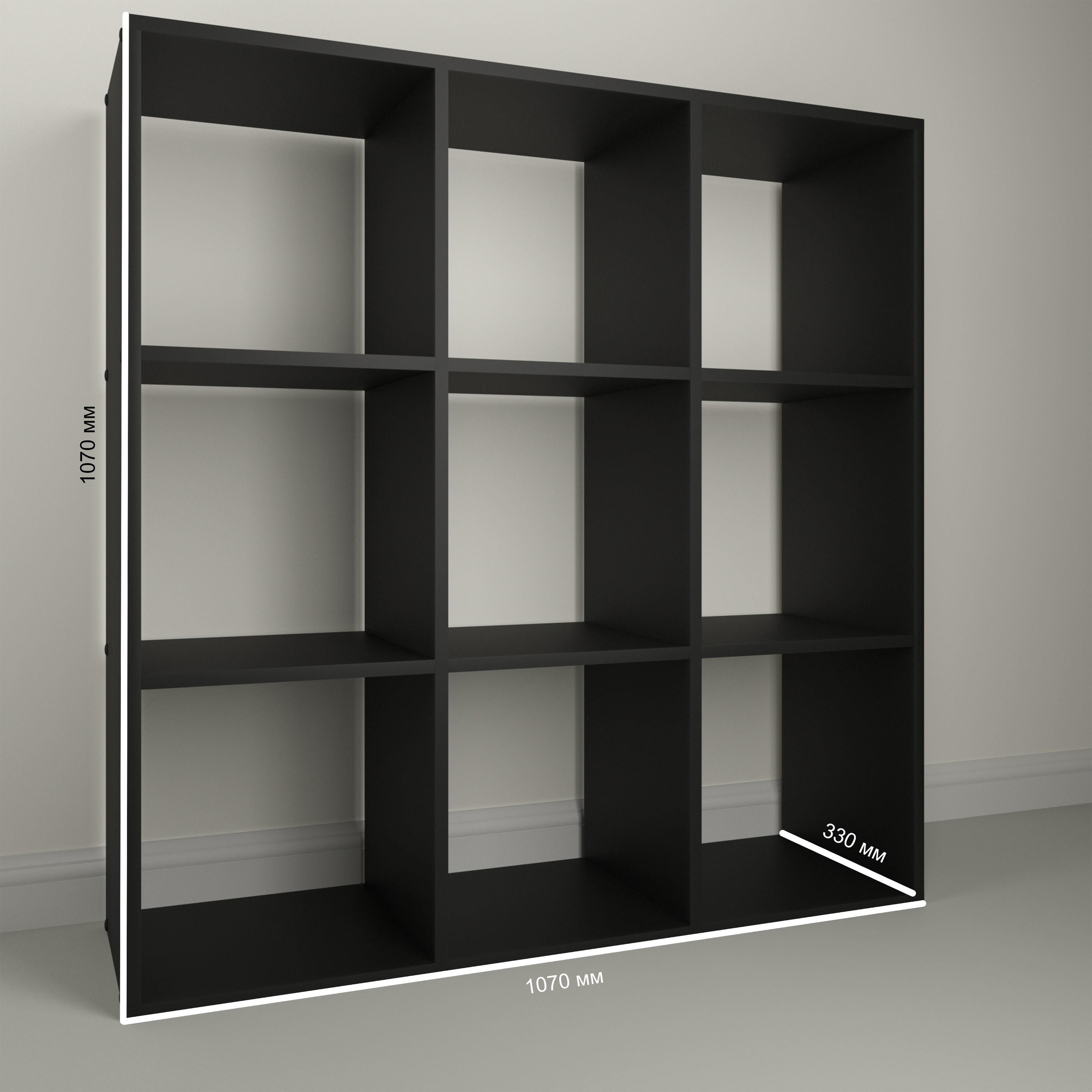 Модель имеет 9 секций. Крепится к стене с помощью специальных болтов и уголков. Размер,см.:высота-106,6ширина- 106,6 глубина- 33Деревянный стеллаж для хранения вещей - это оригинальное и функциональное изделие, которое станет украшением вашего дома, кварт