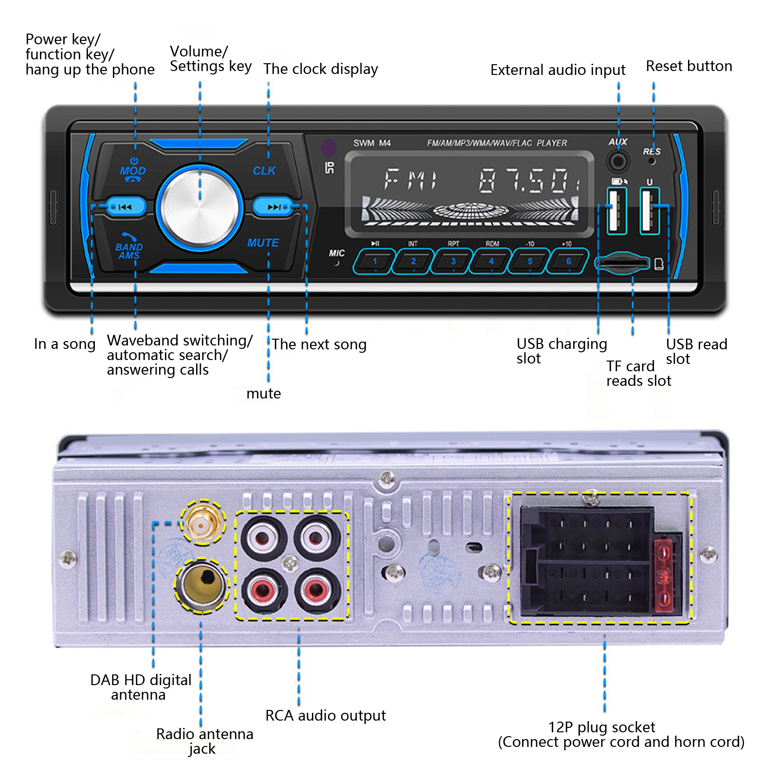 Описание: Радиоплеер можно использовать для звонков, совместимых с Bluetooth, зарядки мобильного телефона и прослушивания музыки без потерь .. Материал: Аппаратные средства. Размер детали: 18,8 см x 5,8 см x 6 см/7,4 "x 2,28" x 2,36 "(прибл.). Черный