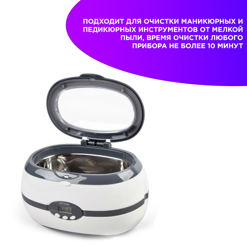 Ультразвуковая мойка - Новейший способ быстрой и эффективной очистки косметологического инструмента. Преимущества ультразвуковой мойки: Безопасность Нет контакта инструмента с агрессивными поверхностями. Нет повреждений инструмента. Универсальность Мойка