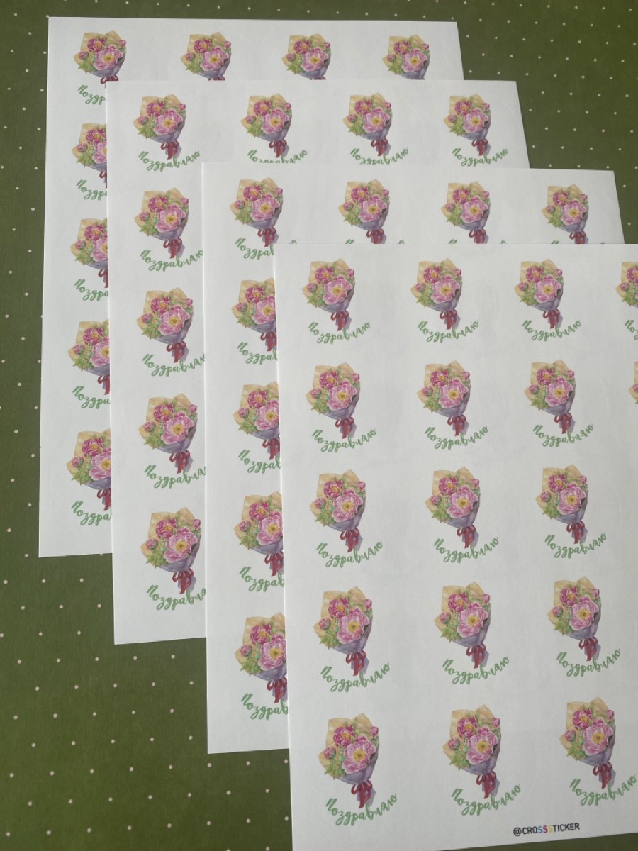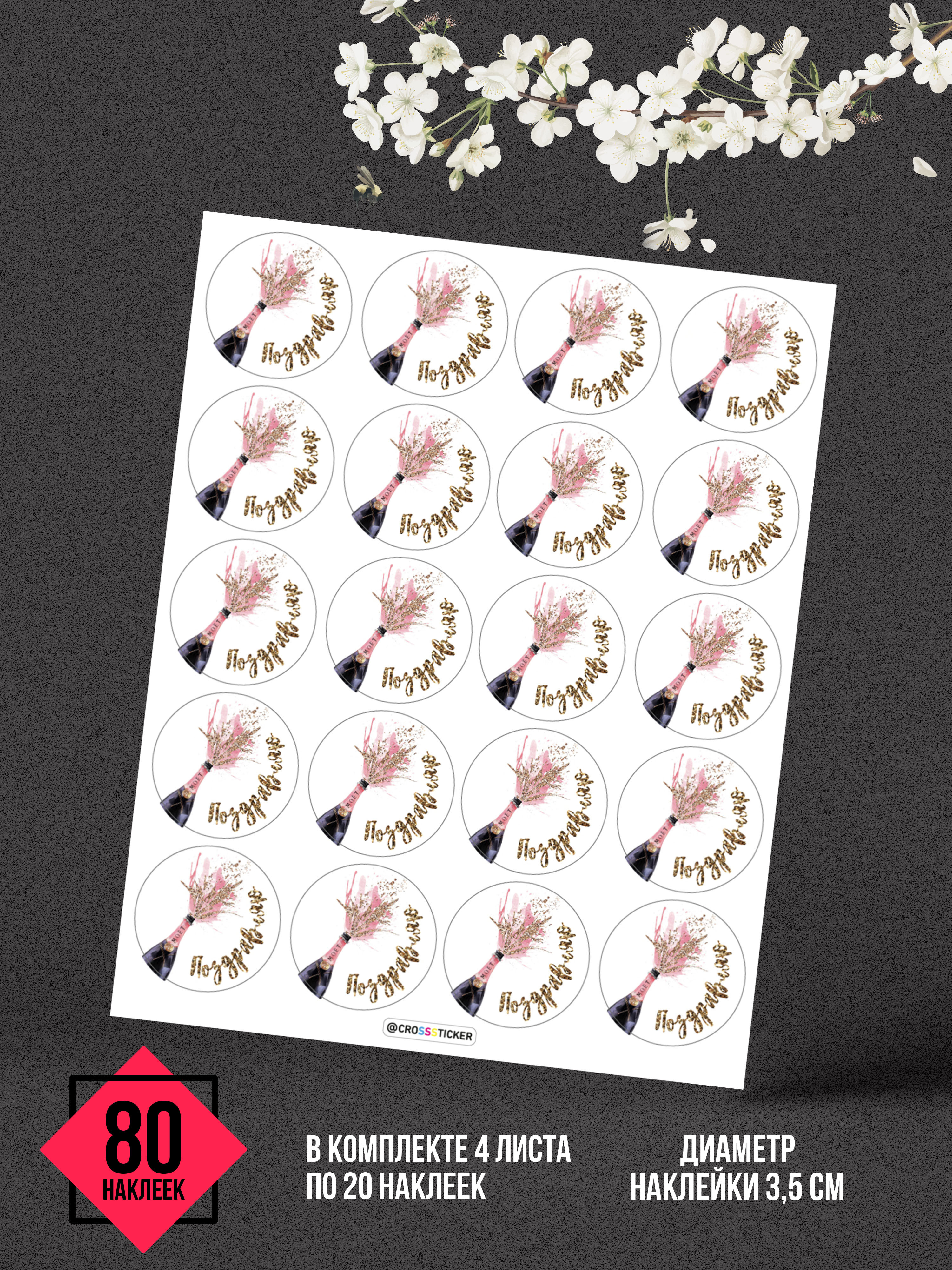 Набор наклеек на подарок с надписью ДЛЯ ТЕБЯ ПОЗДРАВЛЯЮ С ЛЮБОВЬЮ кол-во 80 шт на 4 листах А5 по 20 шт. Диаметр наклейки 3,5 см. Наклейки с милыми сердечками для рукоделия, творчества и бизнеса украсят коробку, крафт пакет, конверт и любую упаковку, букет