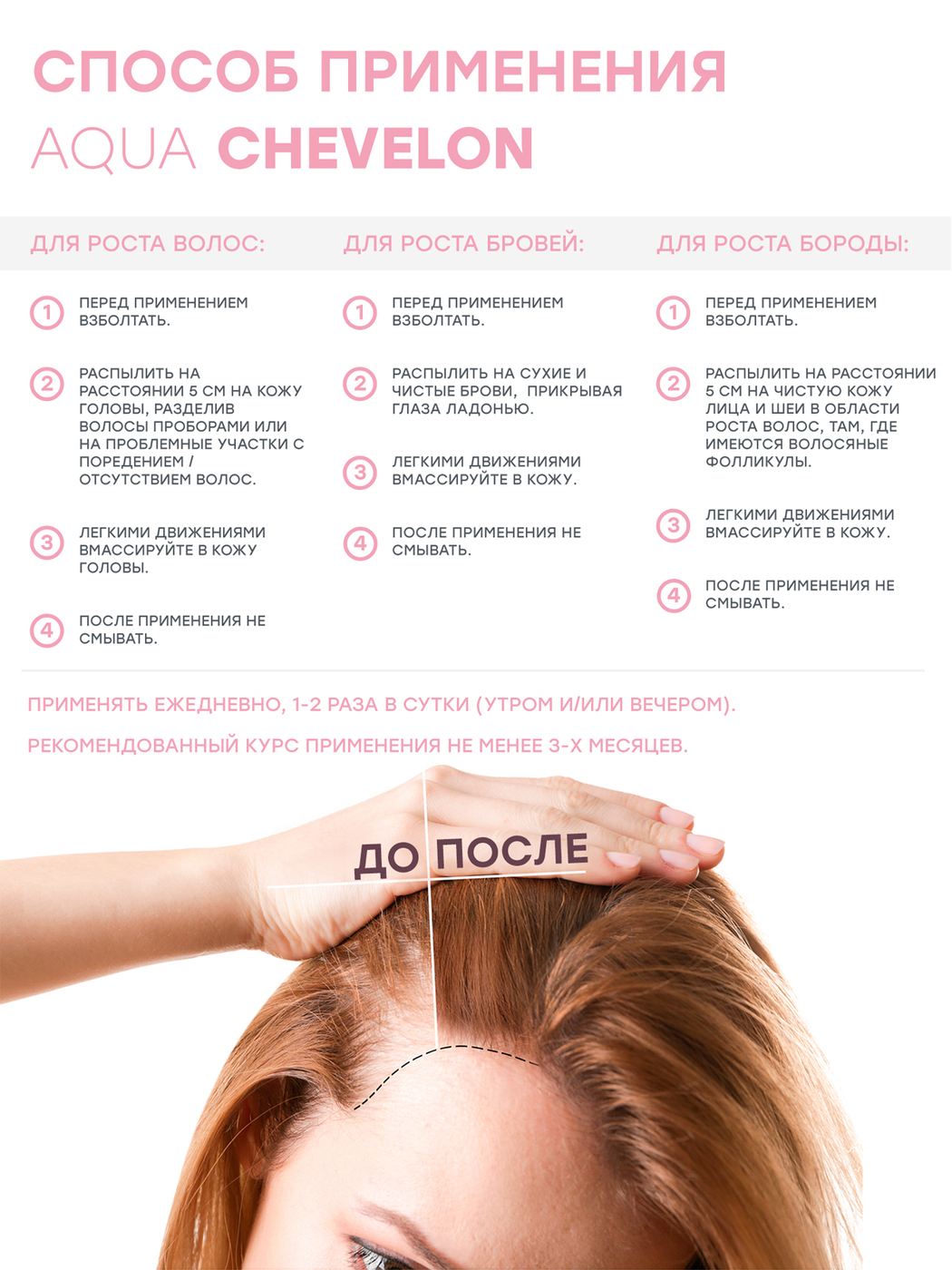 Способ применения:Распылите сыворотку на расстоянии 5 см на кожу головы, разделив волосы проборами (или на проблемные участки с поредением / отсутствием волос). Легкими движениями вмассируйте в кожу головы. Не смывать.Применять 1-2 раза в сутки. Рекоменду