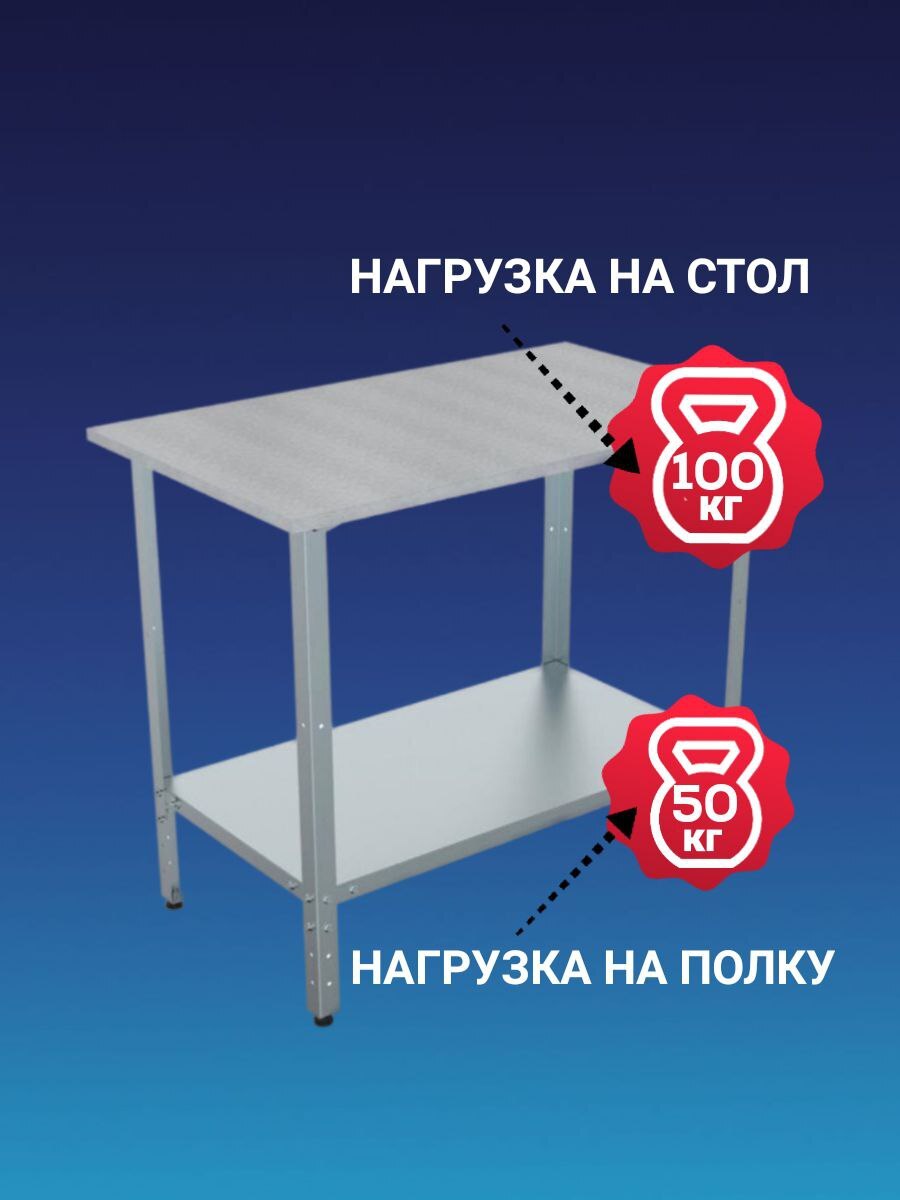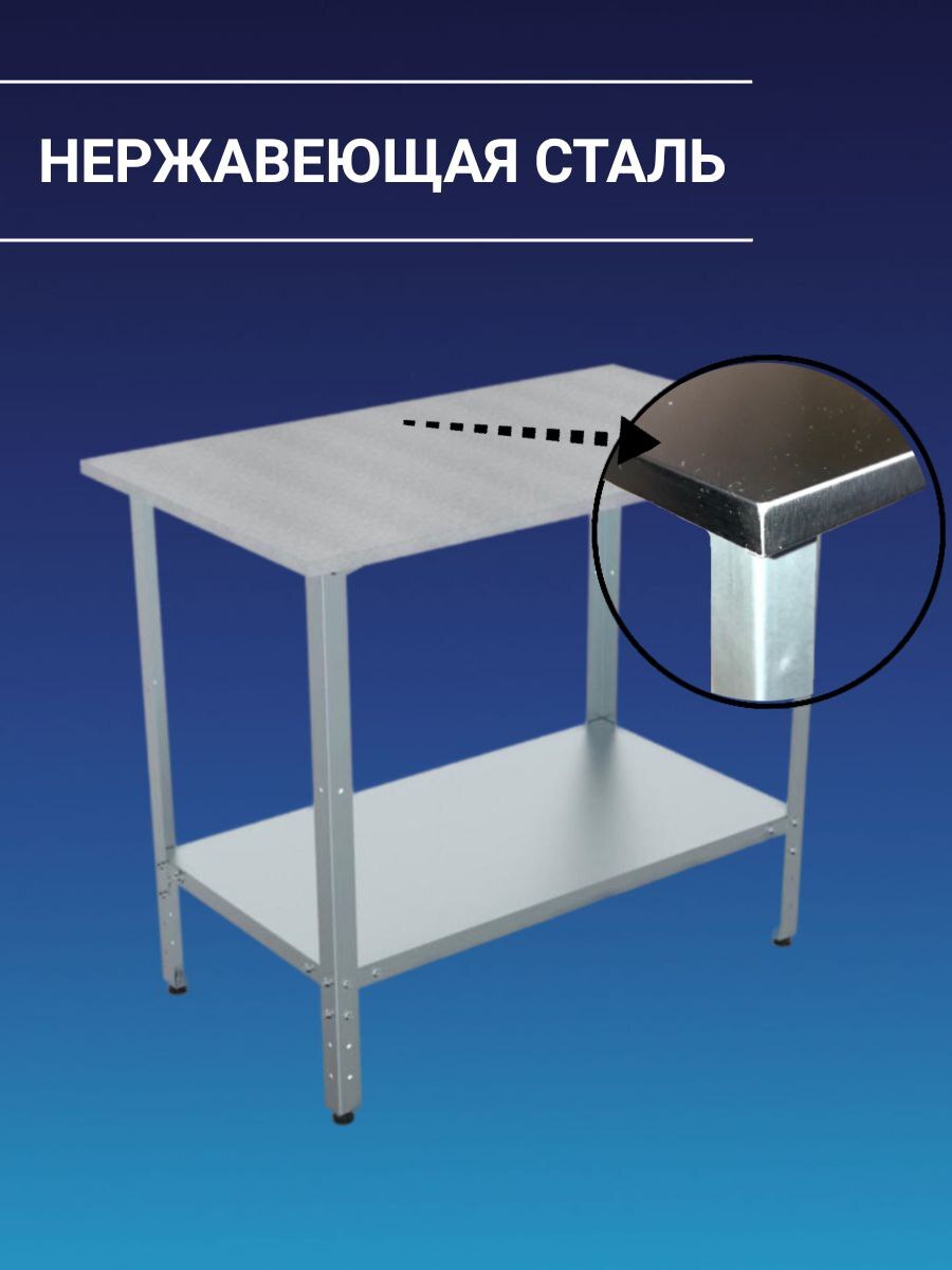 Стол для кухни предприятий общепита размером 80 х 60 х 85 см. Используется для приготовления продуктов тк нержавеющая сталь легко моется и обрабатывается, соответствует требованиям. Сплошная полка в комплекте позволяет использовать место для дополнительно