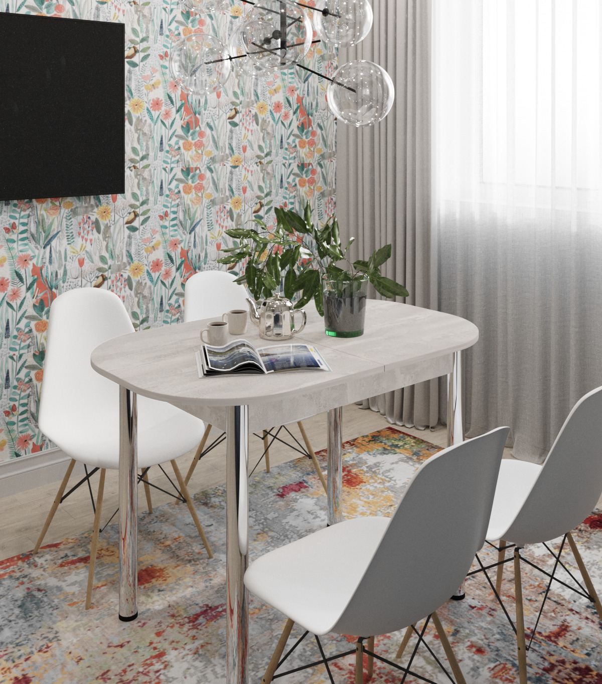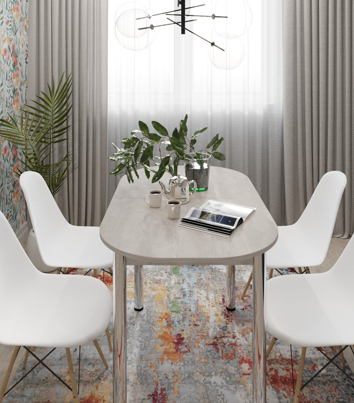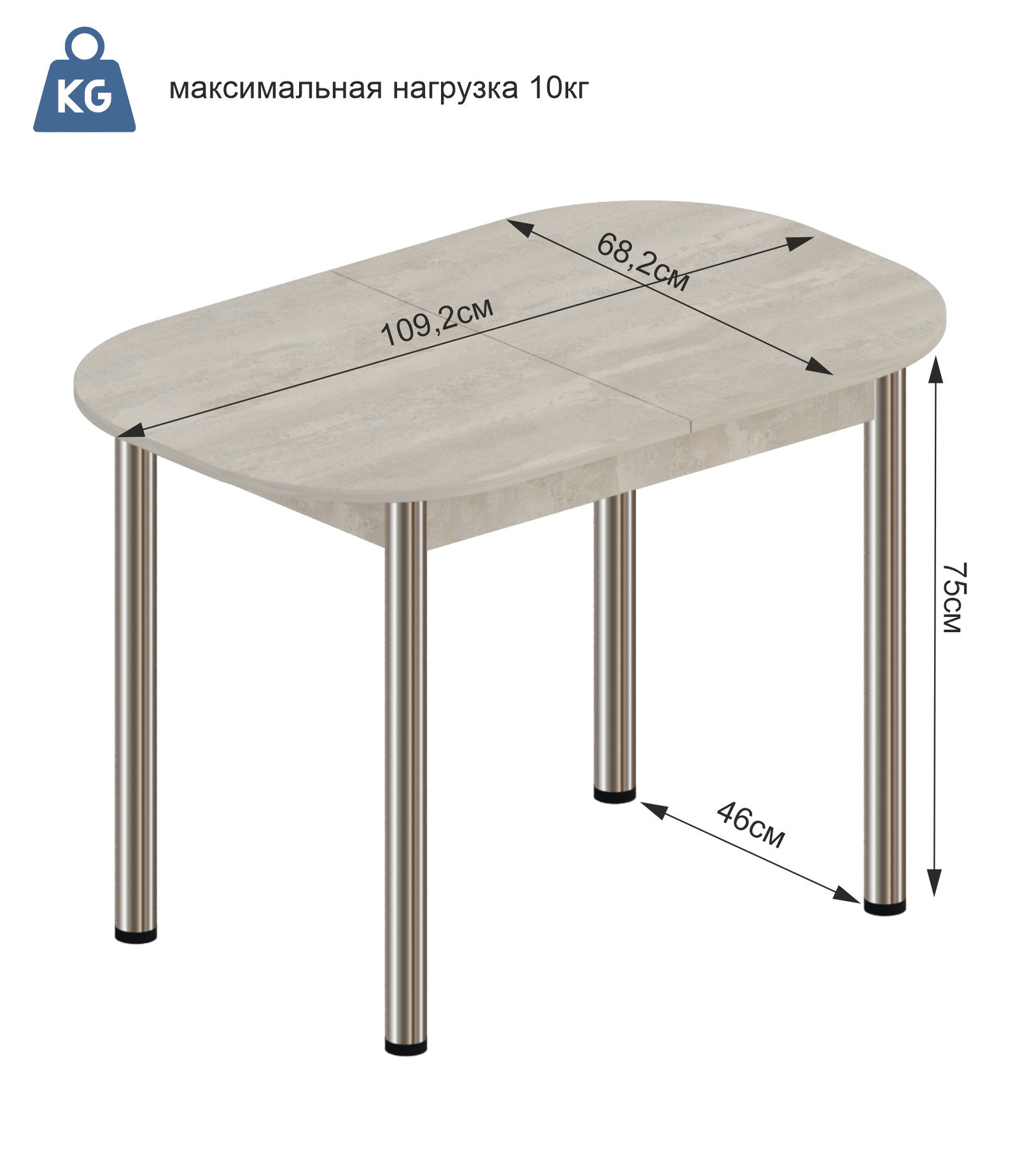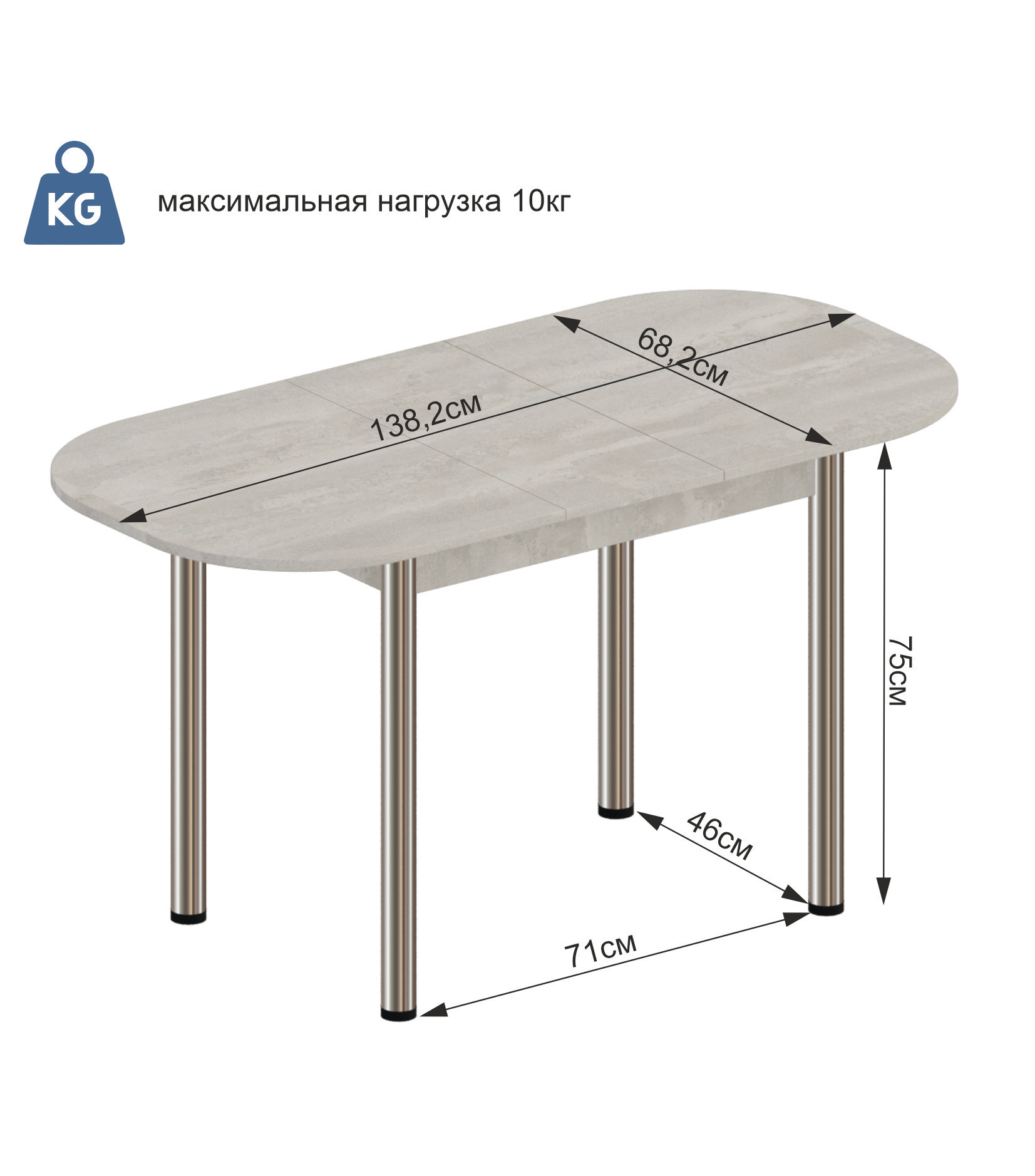 Размер столешницы в сложенном виде 109,2*68,2 см Размер столешницы в разложенном виде 138,2*68,2 см Высота стола: 75 смЦвет ножек: ХромЛДСП Бетонный камень – нейтральный серый цвет, воспроизводит бетонную поверхность. Текстура штукатурки перекликается с