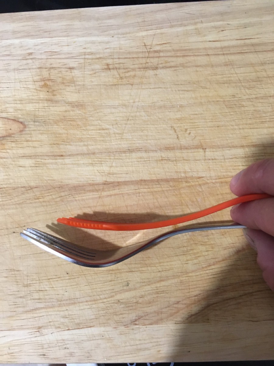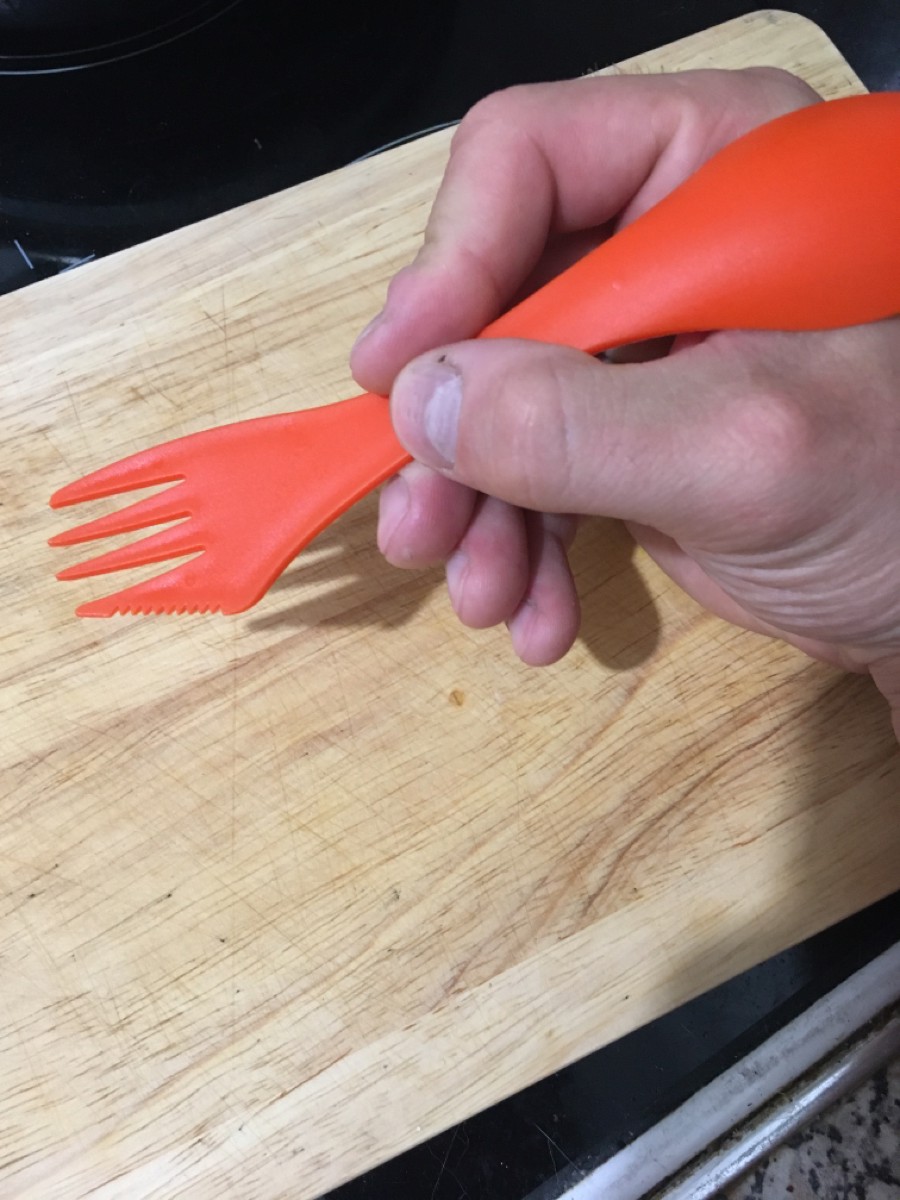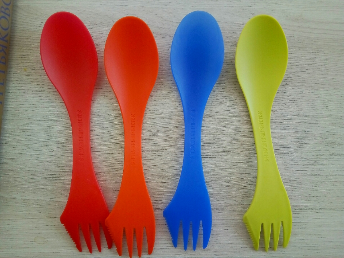 Набор из пластиковых походных столовых приборов.В комплекте Вилка-ложка с зубцами ножа - 4 штЛегкие, компактные и удобные приборы для похода, пикника или дачи.Ловилки практически невесомые, но прочные, что позволяет брать с собой в любой поход не занимая