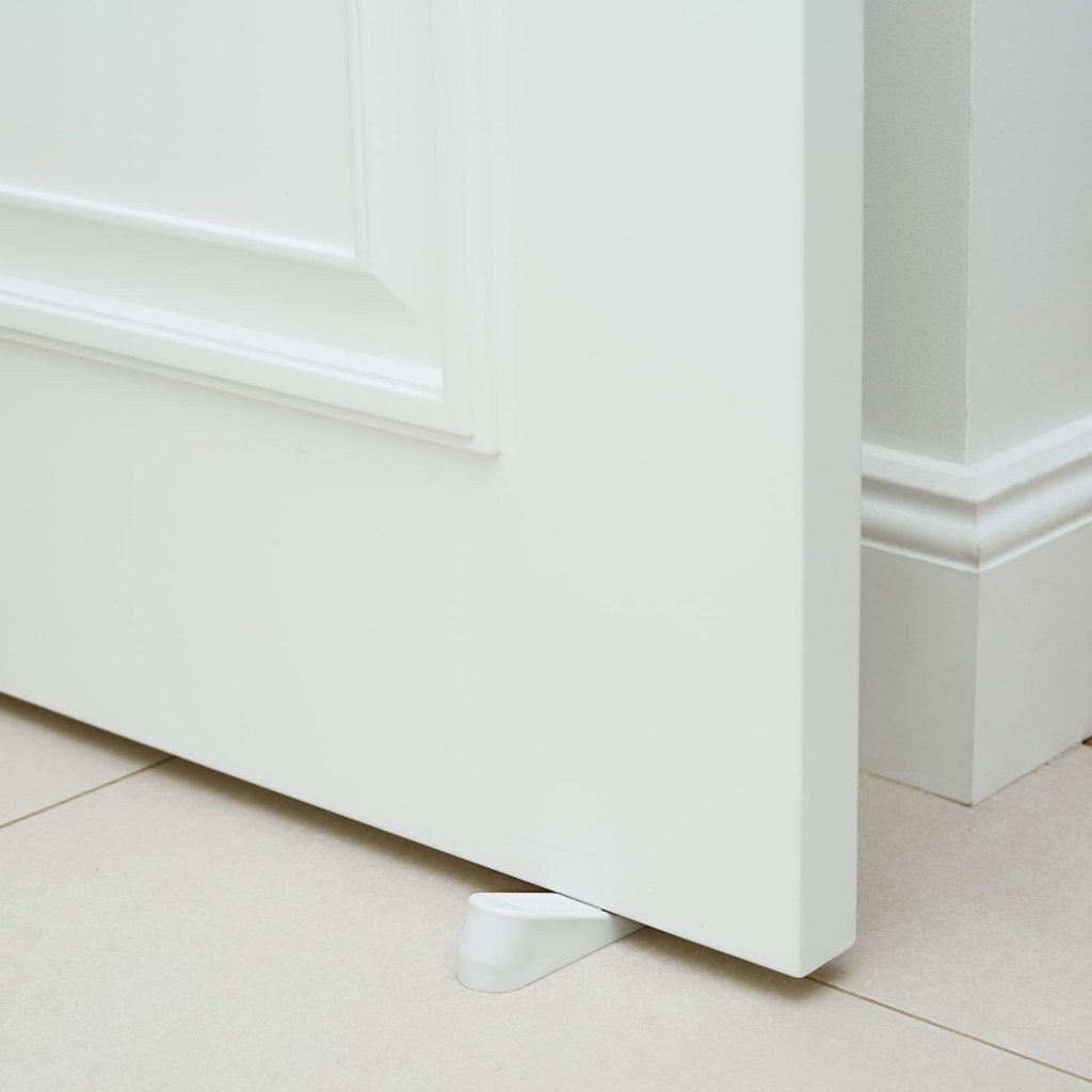 Защемление пальчиков распространенное явление. Устанавливая фиксатор для двери, можно избежать массы проблем. Стоппер вовремя остановит дверь, не давая ей захлопнуться и прищемить нежные пальчики малыша. Фиксатор располагается под дверью, не поз