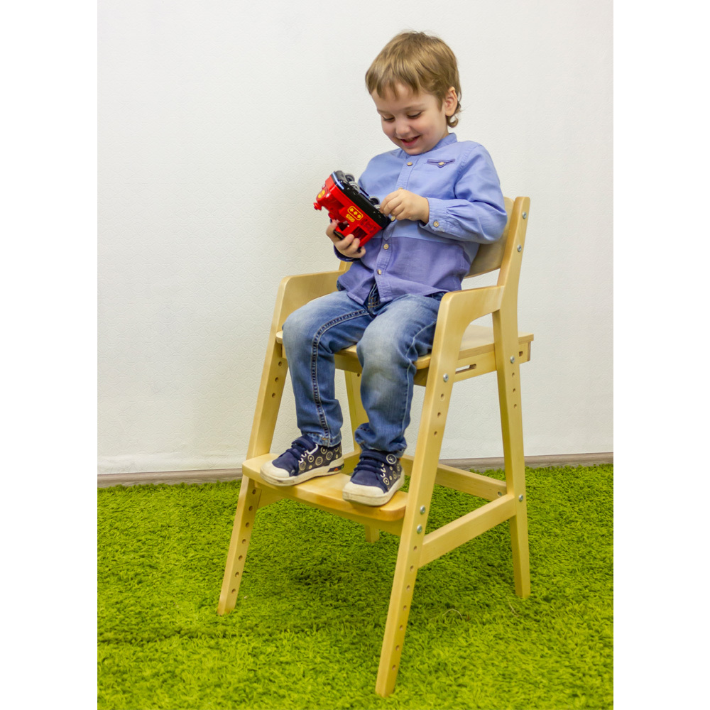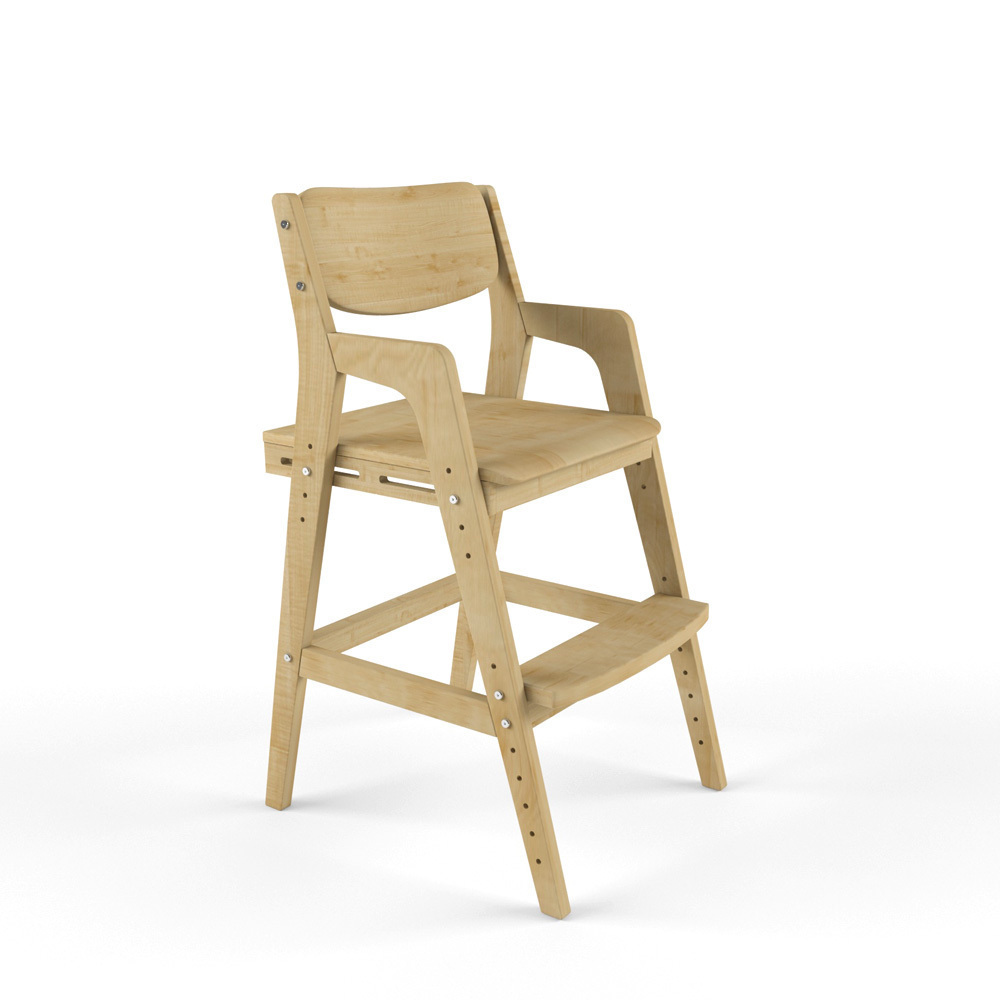 Стул предназначен для сидения детей с 2 лет за взрослым письменным и кухонным столом. Подходит даже взрослым (нижнее положение регулировки). Подлокотники служат ограничителями для маленьких детей. Удобная широкая подножка.Материал:Каркас изготовлен из мас