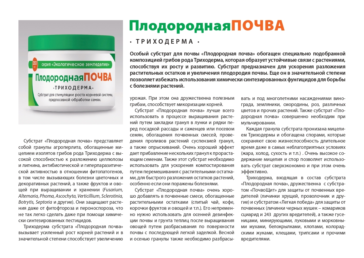 Триходерма образует устойчивые связи с живыми растениями, способствуя их росту и развитию. Она даже способна стимулировать заселение корней растений другими полезными микоризными грибами. Благодаря таким уникальным способностям Триходерма нашла широкое пр