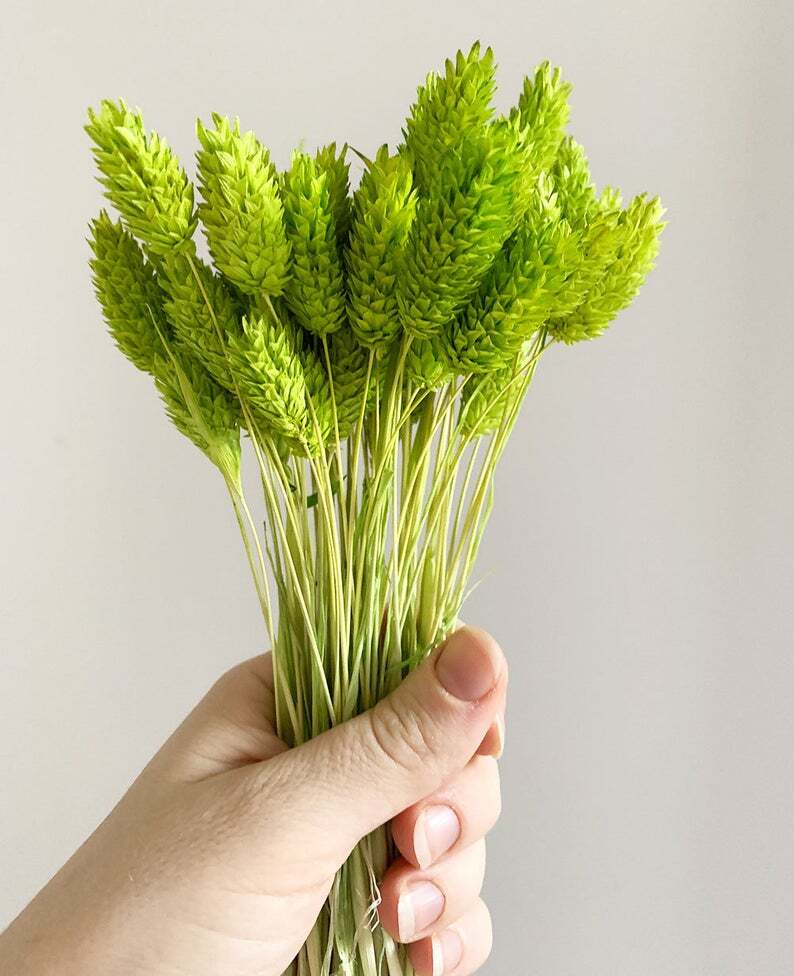 Натуральные сухоцветы фаляриса (или драгоценной травы), в букете 25 веточек злаковых. Высота 50-60 см. Почти не осыпаются. Прекрасно гармонируют с пампасной травой, лагурусом или хлопком. Упаковано в жесткий картонный тубус. После распаковки необходимо от