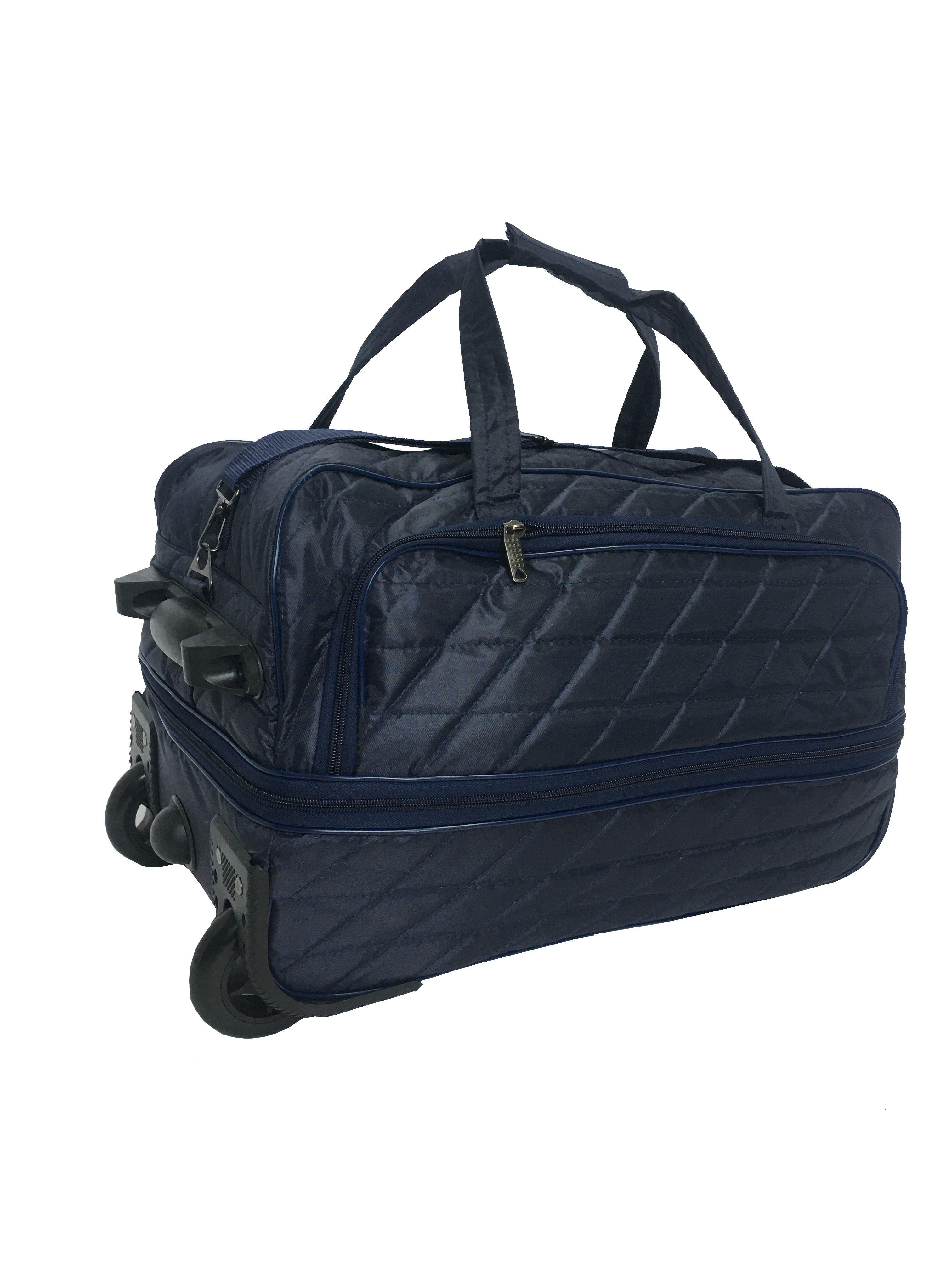 Комплектация:Сумка, плечевой ременьОписание:Сумка дорожная на колесах - очень удобный вариант для путешествий. Изготовлена из высокопрочного водоотталкивающего текстиля и качественной фурнитуры. Основное отделение на молнии. Внешний передний карман на мол