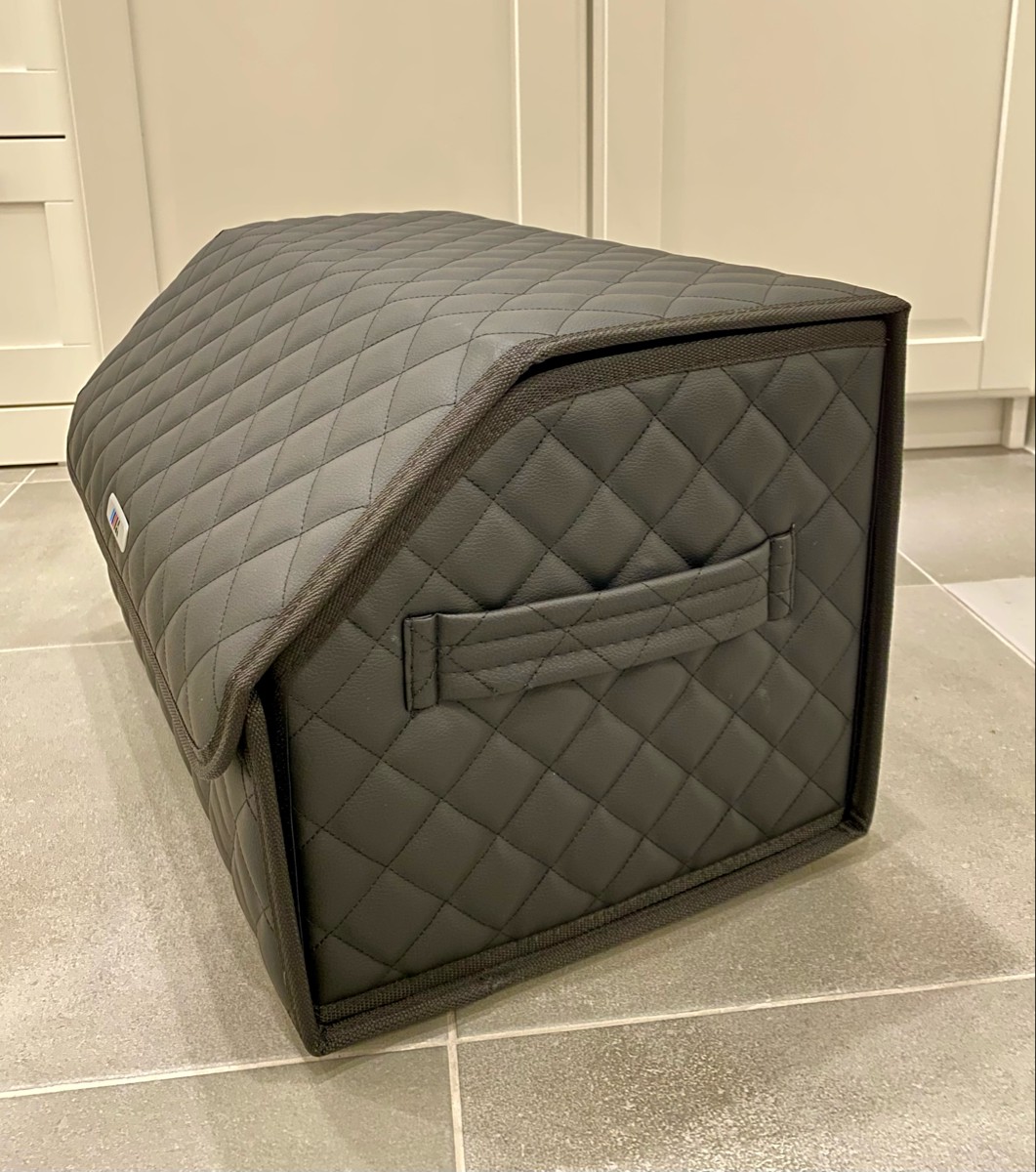 Стильный и очень практичный органайзер для багажника вашего автомобиля. Подходит для любого автомобиля, занимает мало места при хранении и транспортировке (легко разбирается и собирается). Имеет размеры 70/30/30 и объем 70 литров. Идеально подходит для по