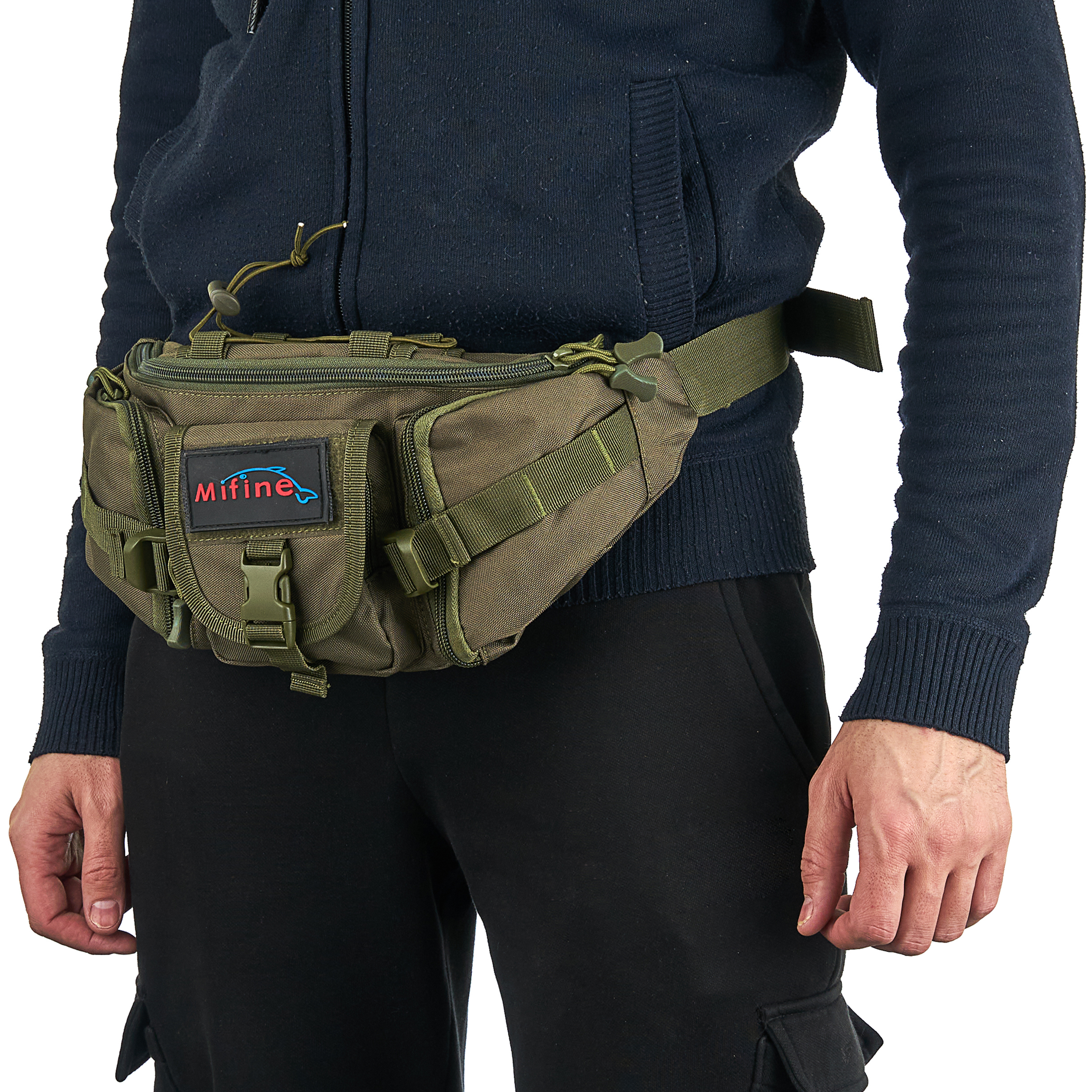 Сумки поясная MIFINE WAIST BAG подходит для рыбалки, похода, пеших прогулок, отдыха на природе.Небольшая сумка для рыбалки/похода вместит в себя все вещи, которые нужны в походе и рыбалке. Сумка имет застегивающиеся карманы на молнии, регулировку пояса, и