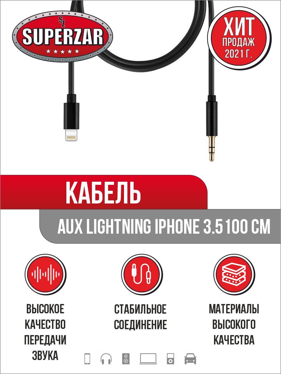 Кабель а AUX представляет собой провод черного цвета со стандартным разъемом 3.5 mm с одной стороны, а с другой разъемом Lightning. Кабель подходит для всех Iphone, Ipod, Ipad выпускаемых с 2012г. AUX- кабель - необходимый аксессуар для тех, кто любит слу