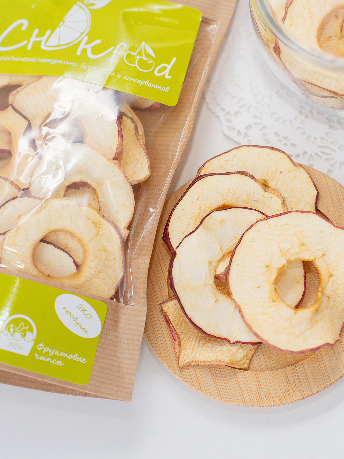 Условия хранения:Хранить при температуре от 0 до +25 С и относительной влажности не выше 70%Состав:Яблоко сушёноеОписание:Фруктовые чипсы – отличный и полезный перекус для современного человека. Польза фрипсов заключается в сохранении до 99% полезных веще