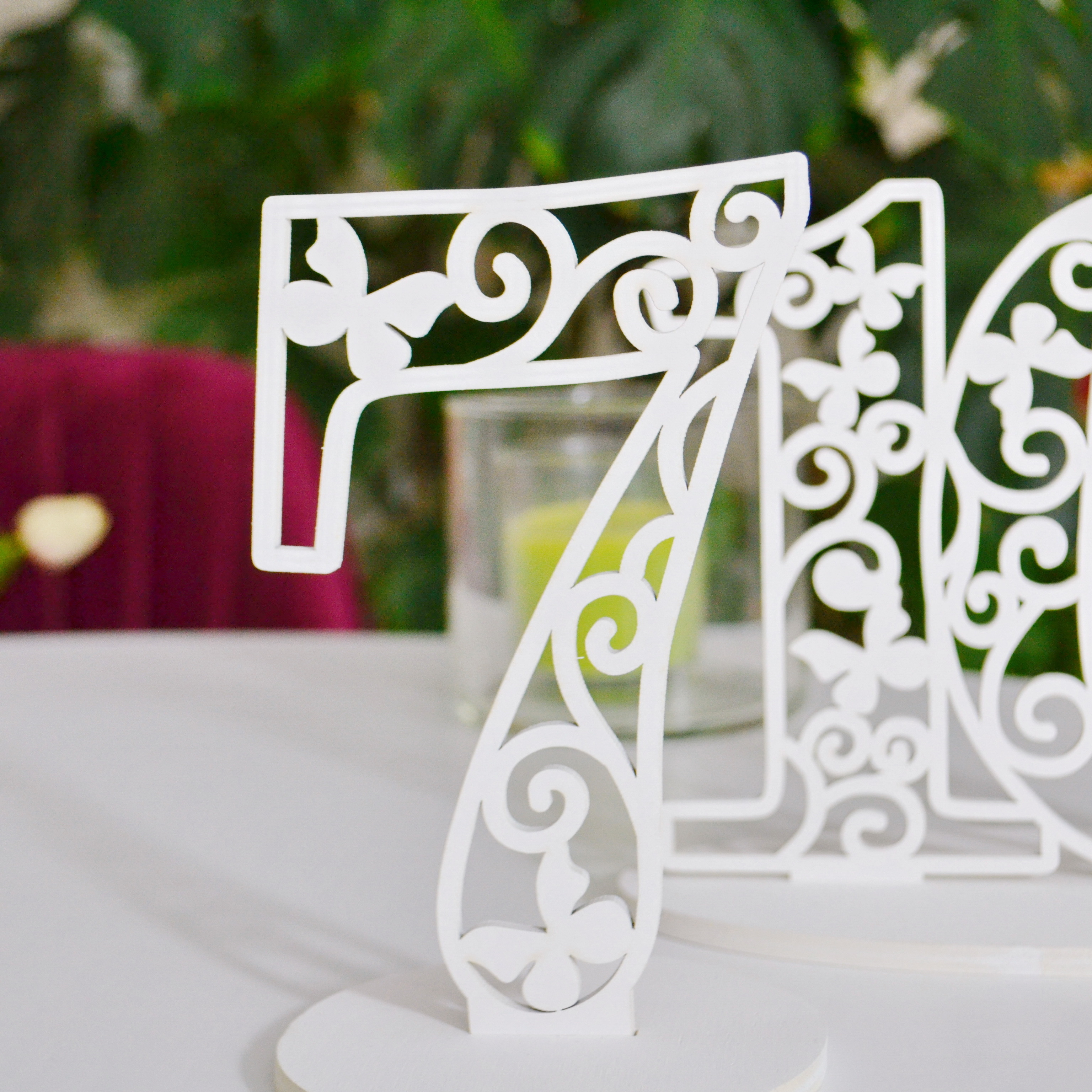 Комплектация:Комплект цифр от 1 до 10Описание:Цифры из натурального дерева выполненные с помощью лазерной резки. Набор поможет вашим гостям правильно определить стол за которым он сидит, а так же станет прекрасным украшением для вашей свадьбы.
