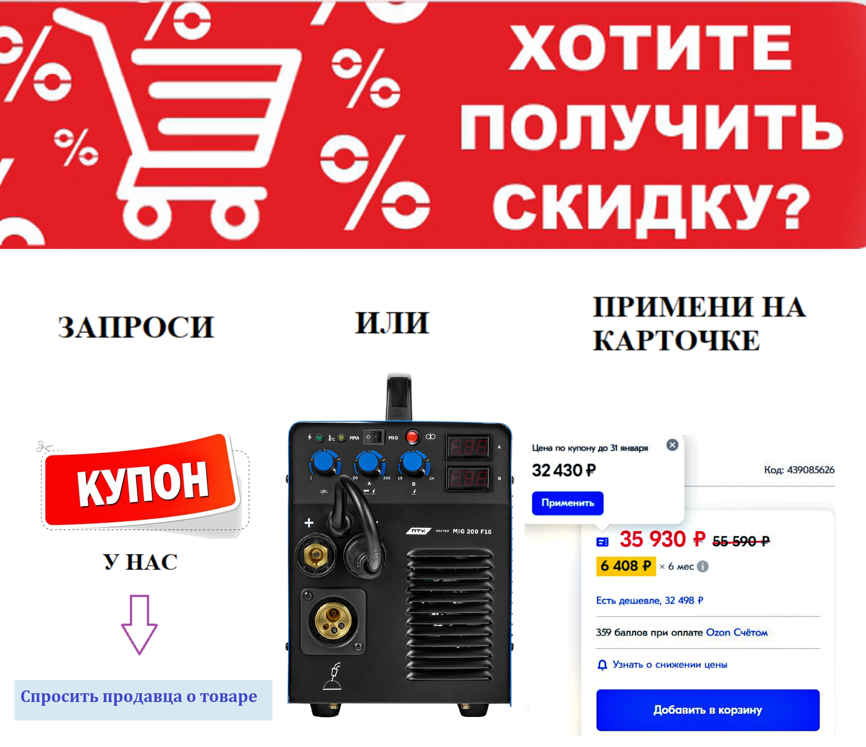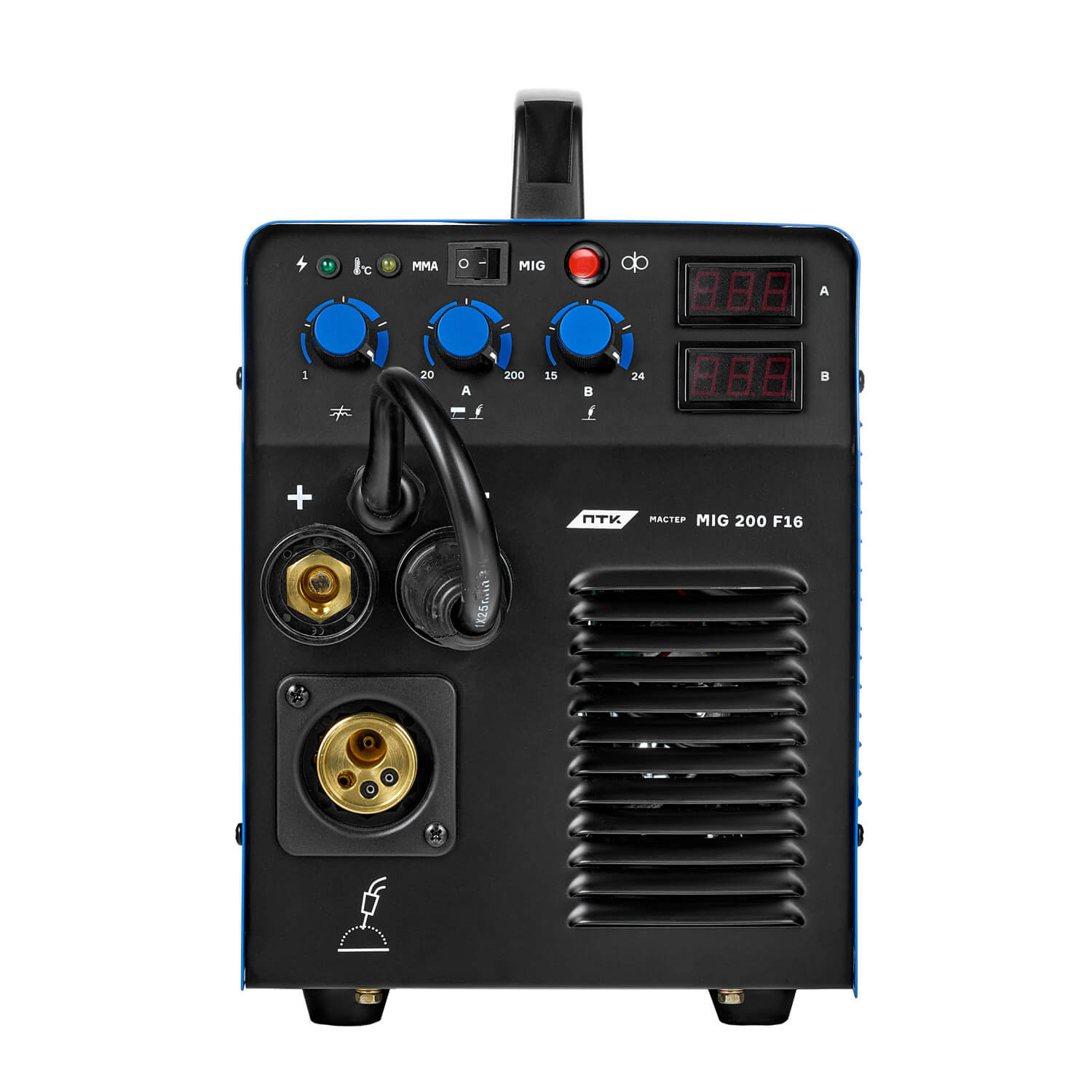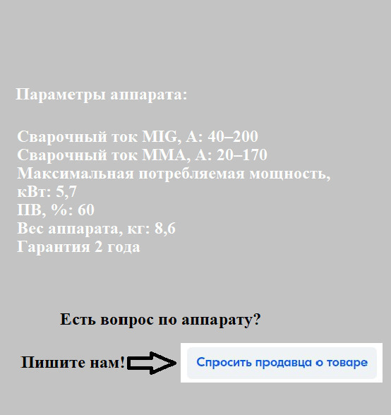 Комплектация:В стандартную комплектацию входит:- Сам сварочный аппарат МАСТЕР MIG 200 F16 - 1шт;- Полуавтоматическая горелка MIG 15 серии — 1 шт.;- Клемма заземления — 1 шт.;- ЗИП и комплектующие — 1 набор;- Руководство по эксплуатации — 1 шт.Так же допол