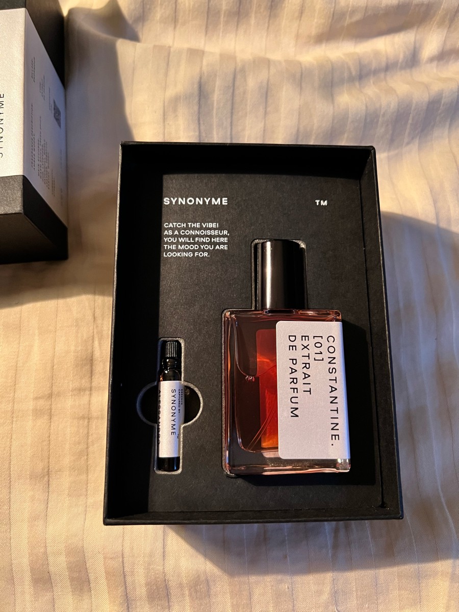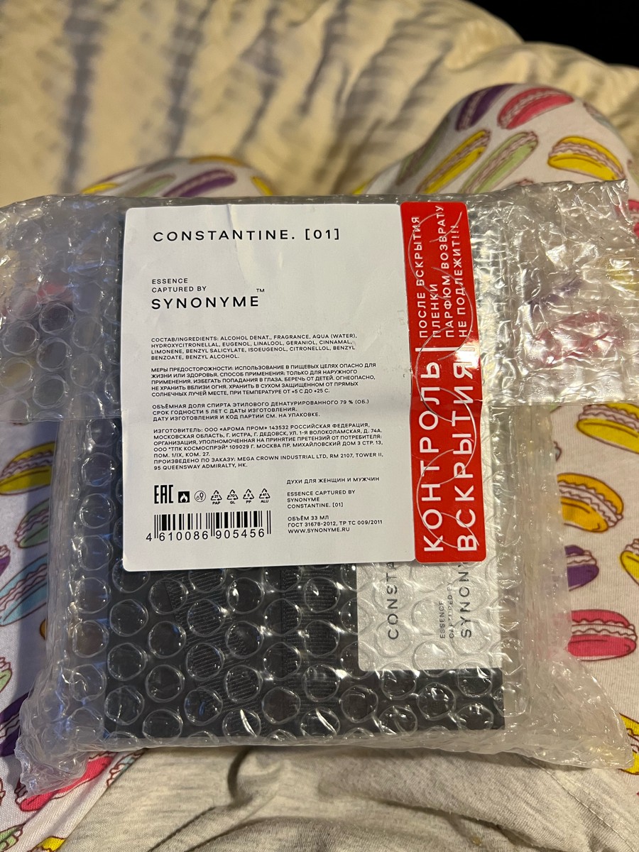 Состав:ALCOHOL DENAT., FRAGRANCE, AQUA (WATER),HYDROXYCITRONELLAL, EUGENOL, LINALOOL, GERANIOL, CINNAMAL, LIMONENE, BENZYLSALICYLATE, ISOEUGENOL, CITRONELLOL, BENZYL BENZOATE, BENZYL ALCOHOLКомплектация:Духи экстра SYNONYME CONSTANTINE. 01, 33 мл;Пробник