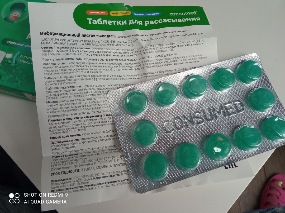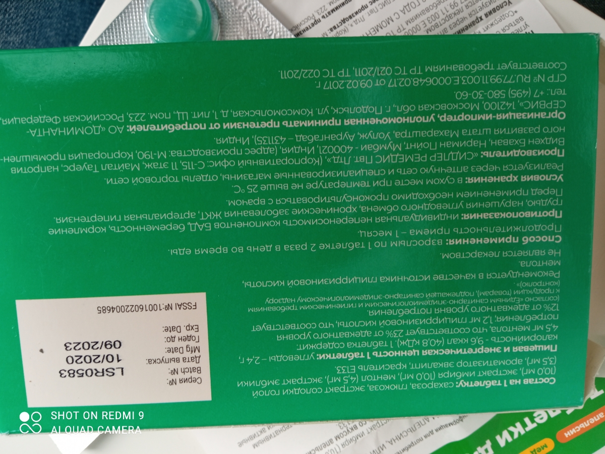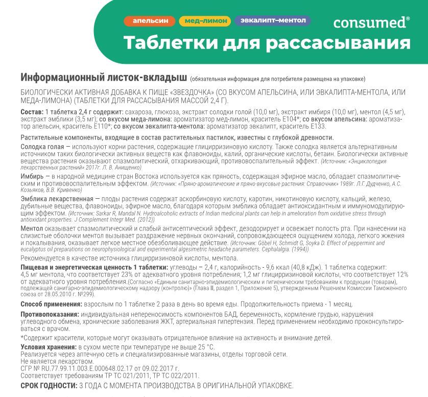 Дозировка:15 мгСостав:1 таблетка 2,4 г содержит: сахароза, глюкоза, экстракт солодки голой (10,0 мг), экстракт имбиря (10,0 мг), ментол (4,5 мг), экстракт эмблики (3,5 мг), ароматизатор эвкалипт, красительСпособ применения:взрослым по 1 таблетке до 4-х ра