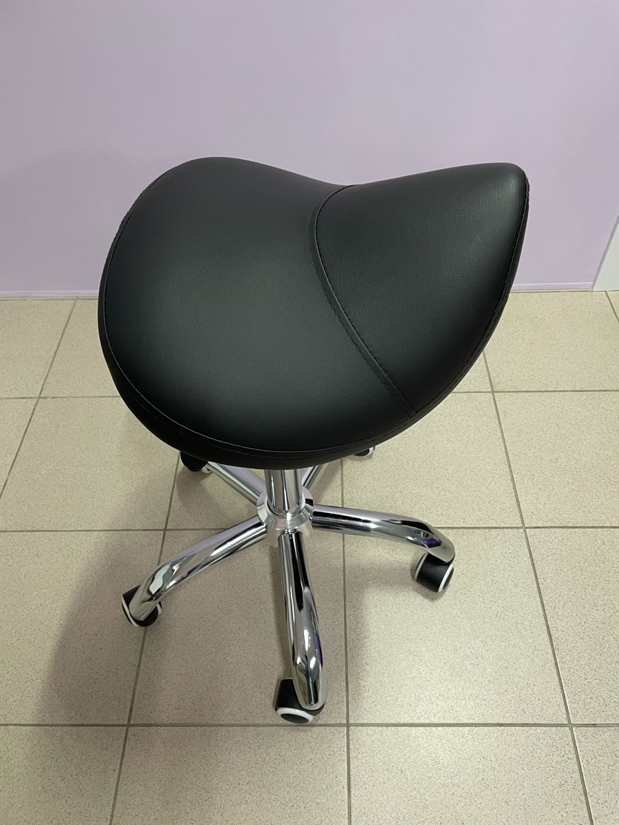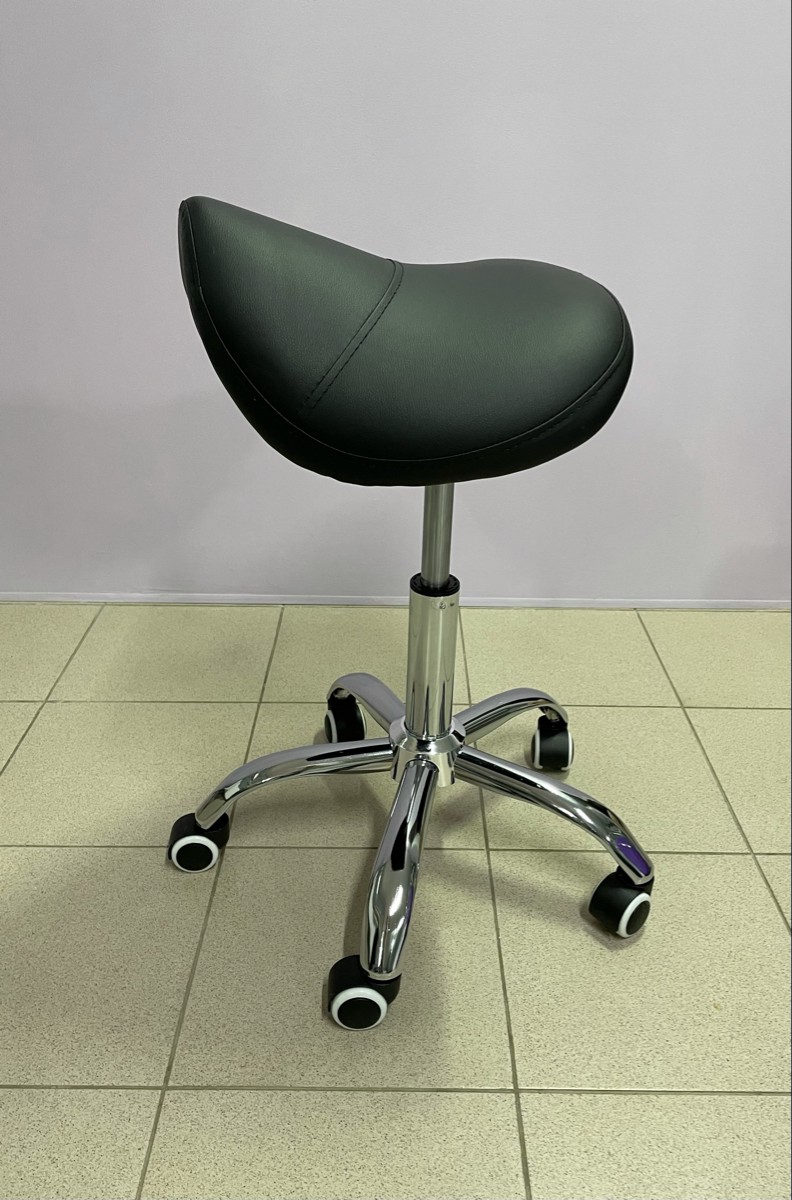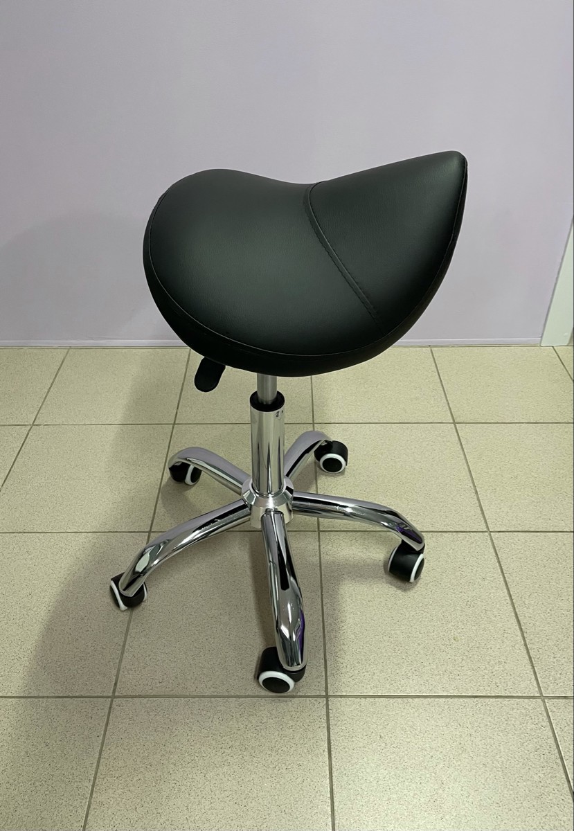 Ортопедический стул-седло без спинки на хромированном основании (чёрный)Комфортное рабочее место – залог качественного выполнения должностных обязанностей. Стул седло для мастеров массажа, маникюра, педикюра, косметолога. Широкий спектр применения, комфор