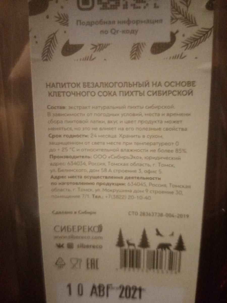 Таёжный эликсир — это комплекс биологически активных веществ, включающий витамины, жизненно важные микроэлементы, фитонциды и флавоноиды. Таёжный эликсир направлен на укрепление иммунной системы и поддержания организма в тонусе, легко усваивается и пробуж