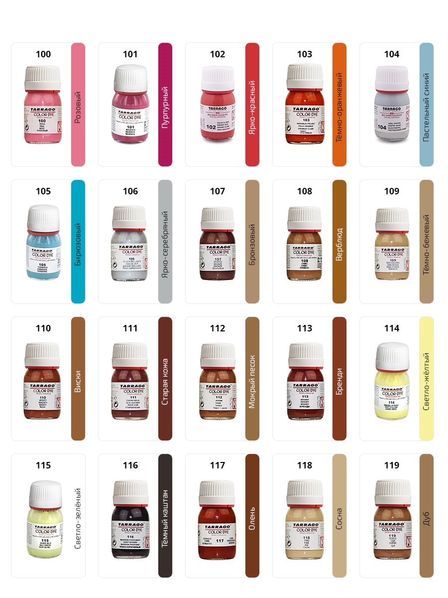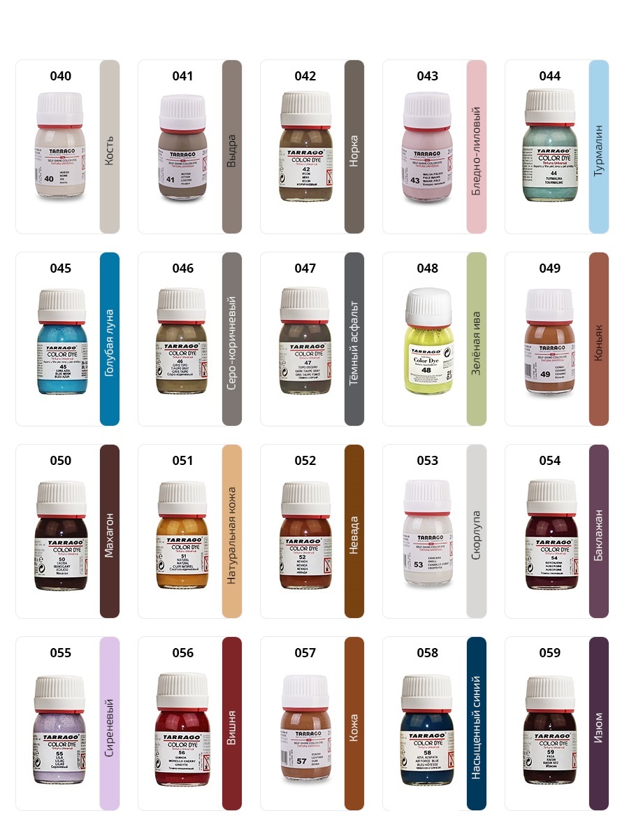 Стойкий краситель для всех видов натуральных и синтетических гладких кож. Глубоко проникает в структуру кожи, качественно окрашивает и перекрашивает любой цвет в более темный. Эффективно устраняет потертости и царапины, обновляя верхний слой кожи. Отли
