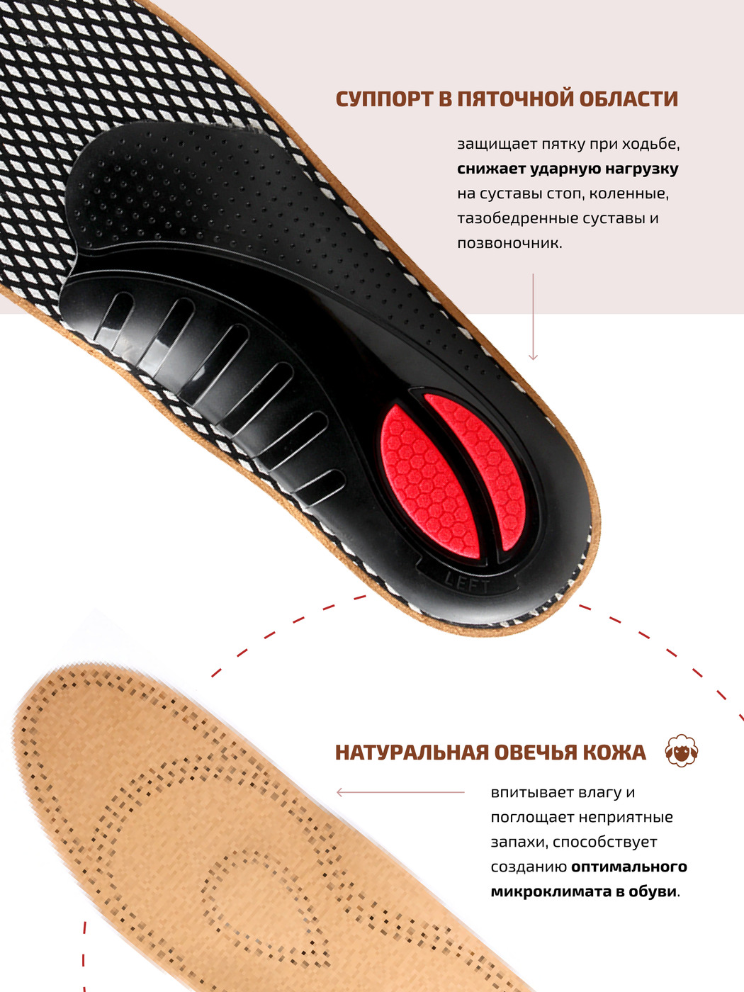 Стельки ортопедические анатомические, Каркасные ортопедические стельки, Стельки анатомические, При плоскостопии, Ортопедическая обувь, Для обуви, Ортопедические стельки при плоскостопии, Ортопедические стельки ANATOMIC, TARRAGO, овечья кожа.Стельки ортопе